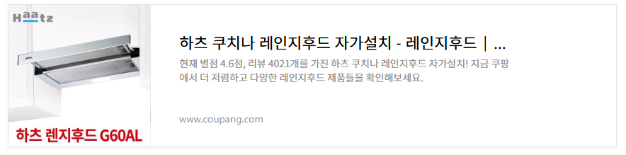<쿠팡 로켓배송> 하츠 주방 레인지후드 구매하기