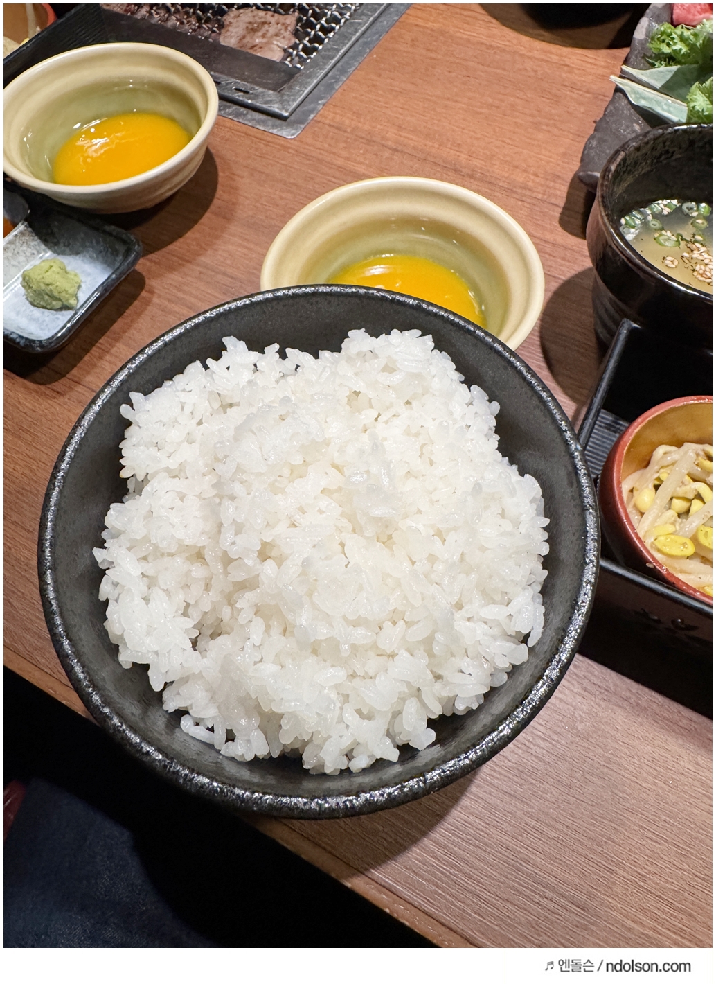 꽤 큰 양이 나왔고, 고기와 함께 다 먹기엔 다소 부담스러웠습니다. 밥을 적당히 드시려면 ‘소량으로 주세요’라고 미리 말하는 것도 팁입니다.
