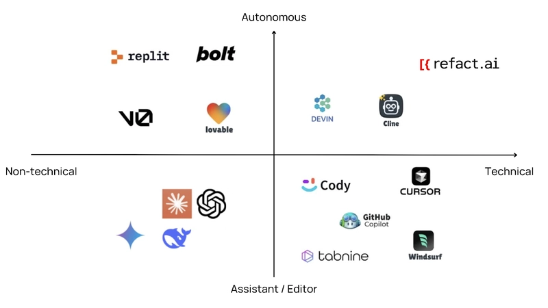 3. 기존 기술의 퇴장: 자동완성 기반의 코딩 보조 기술은 이제 점점 낡은 기술로 간주되고 있습니다. ChatGPT, Copilot 등으로 대표되는 채팅형 코딩도 일부 개발자들에게는 느리고 비효율적인 방식으로 전락하며, 에이전트 기반의 새로운 방식이 주목받고 있습니다.