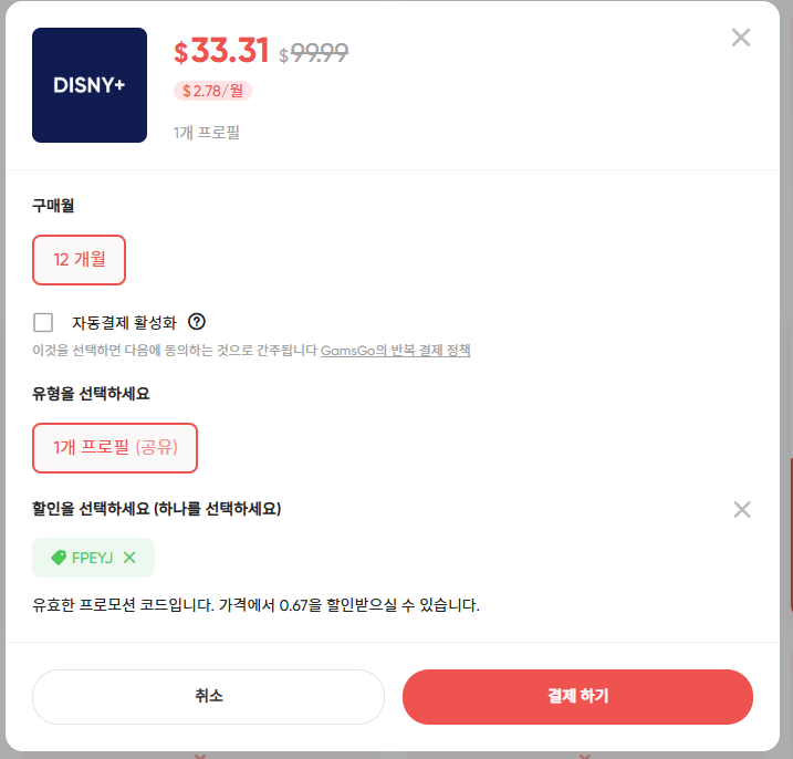 디즈니 + 구독할인 결제 및 보안 안내