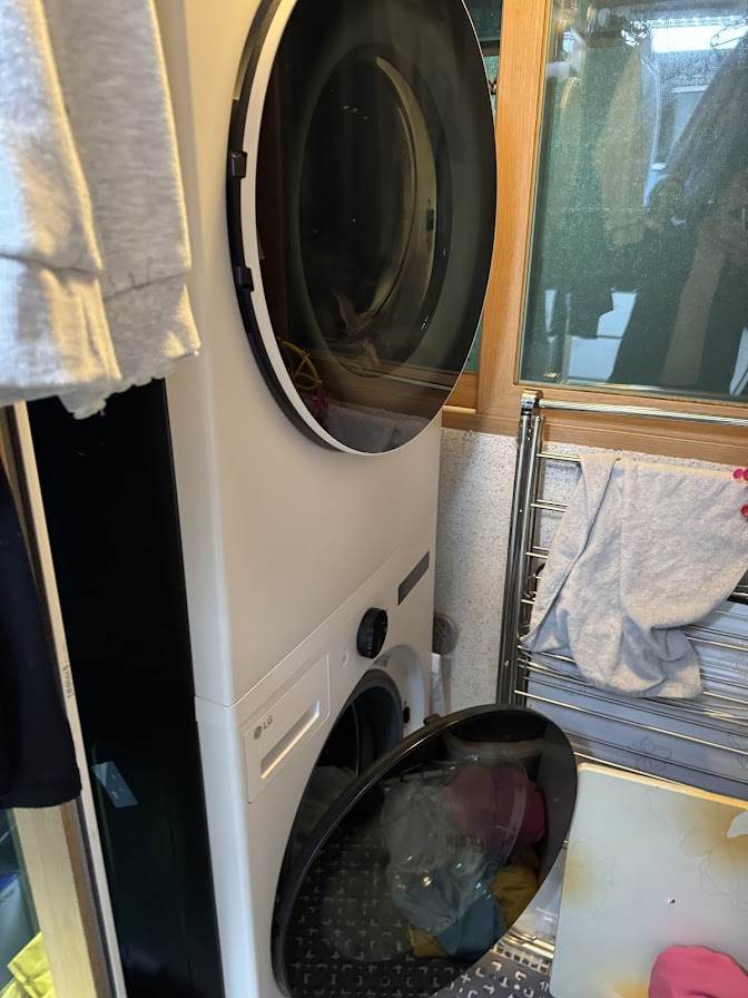 아파트에서 빌라로 이사하면서 공간 활용이 가장 큰 고민이었습니다. 특히 세탁실이 넓지 않아 기존처럼 세탁기와 건조기를 나란히 두기엔 무리가 있었고, 그 해답이 바로 LG 워시타워였습니다.