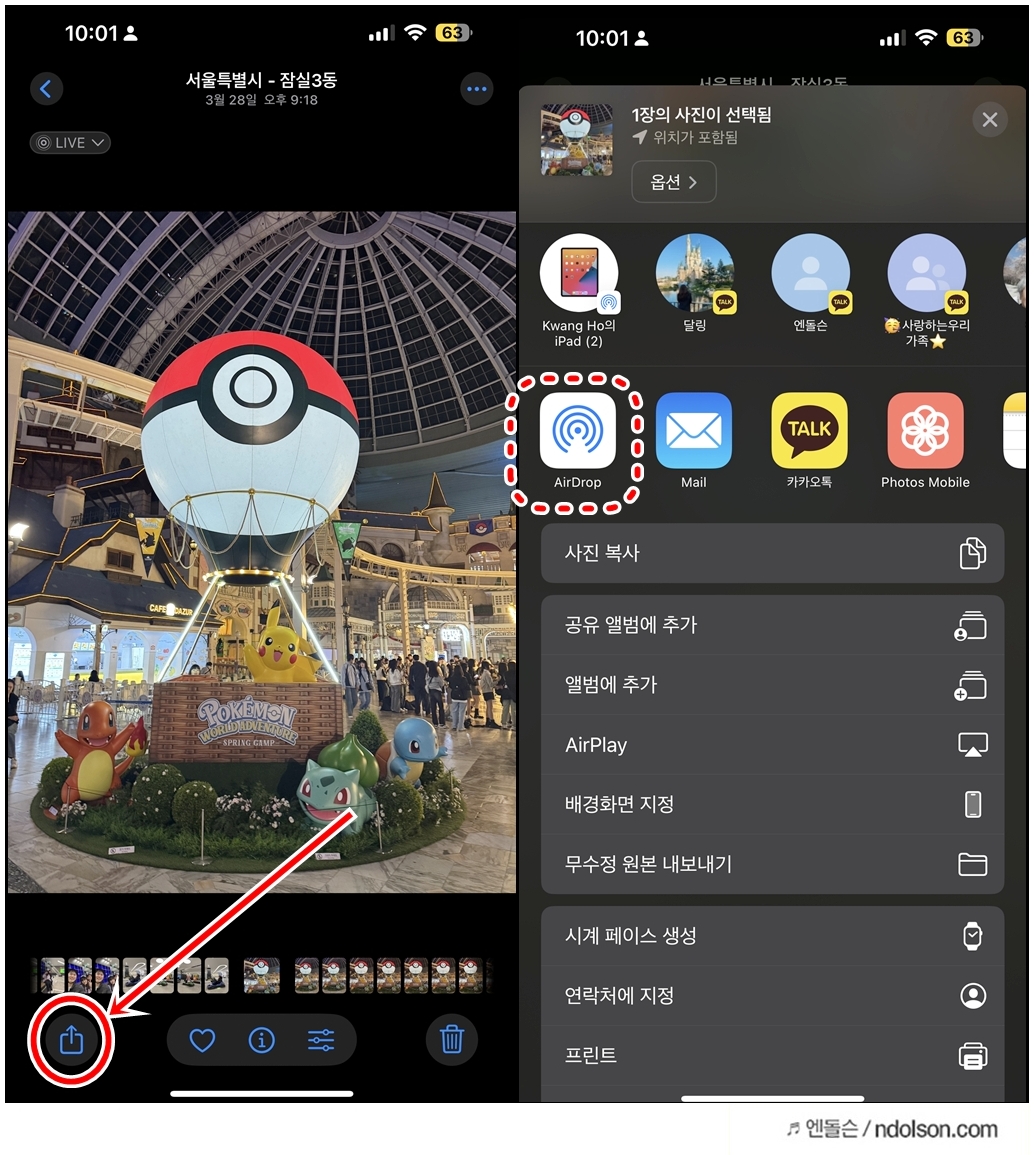 에어드롭은 쉽게 동영상, 사진을 다른 애플 유저 아이폰 사용자에게 줄 수 있습니다.