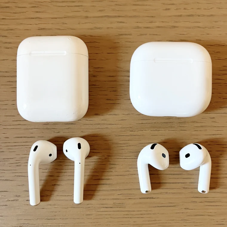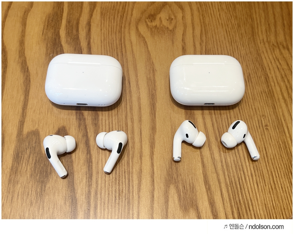 - 에어팟 4세대: 오픈형 디자인, 실리콘 팁 없음, 노이즈 캔슬링 가능, 길고 얇은 본체
