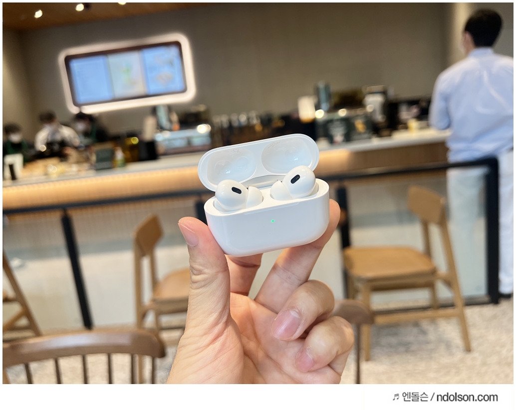 에어팟 프로 2세대는 애플의 무선 이어폰 라인업 중에서 하이엔드 모델에 해당한다. 프리미엄 사운드와 뛰어난 노이즈 캔슬링, 그리고 실리콘 팁을 통한 완전한 차음이 특징이다. 외부 소음을 거의 완벽하게 차단할 수 있는 만큼, 몰입감 있는 청취 경험을 원하는 사용자에게는 최적의 선택이다.