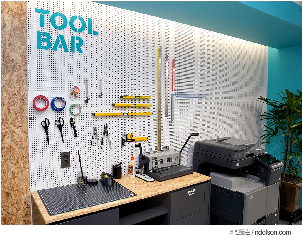 또 툴바(ToolBar)는 프린터기, 문서 파쇄기, 복합기, 가위, 자 등의 공구가 위한 공간인데요. 개인사업자라면 부담스러울 수 있는 복사기 등도 편하게 사용할 수 있는 공간입니다.