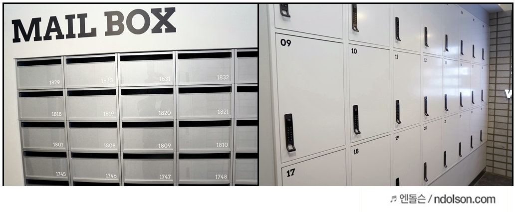 사무실로 받는 우편물의 경우, 메일박스(MAIL BOX)로 받을 수 있습니다. 또 개별 사물함을 통해서 물건을 보관할 수 있는 공간도 비치되어 있습니다.