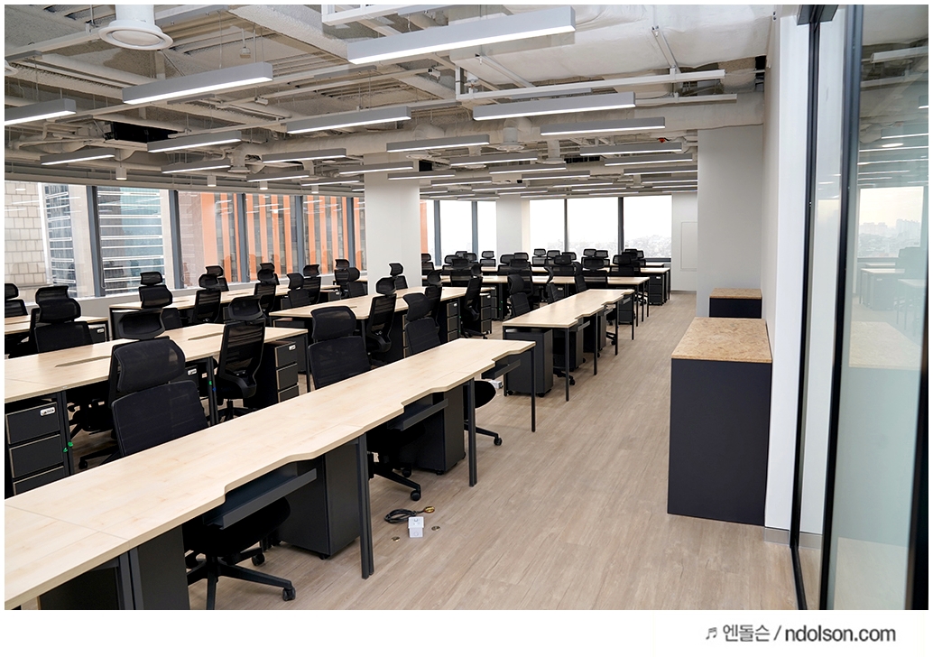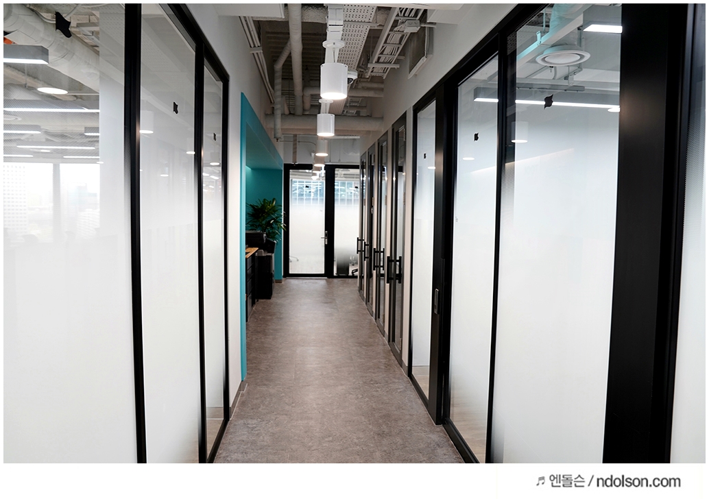 아무래도 여러 사무실이 모여있어서 시너지도 나겠지만, 프라이버시가 걱정될 수 있죠? 사무실 내부를 가려주는 불투명 시트지가 높게 설치되어 사생활 보호를 할 수 있게 되어 있습니다. 확실히 독립된 사무실 느낌이 납니다.