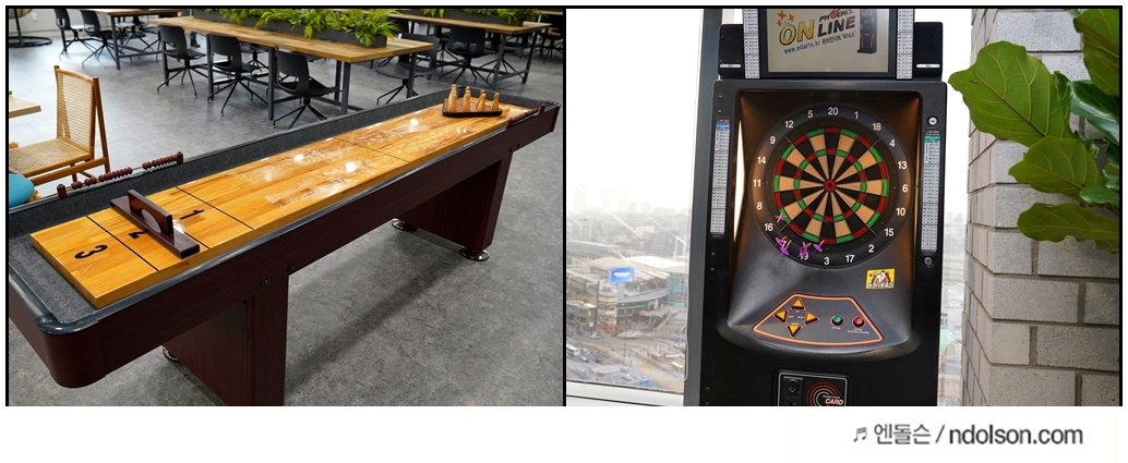 간단한 공굴리는 게임이나 다트게임을 통해서 스트레스를 해소할 수 있는 놀이공간도 있는데요. 점심값 내기라던지, 짜증 나는 기분을 날려버릴 때 좋아 보였습니다.