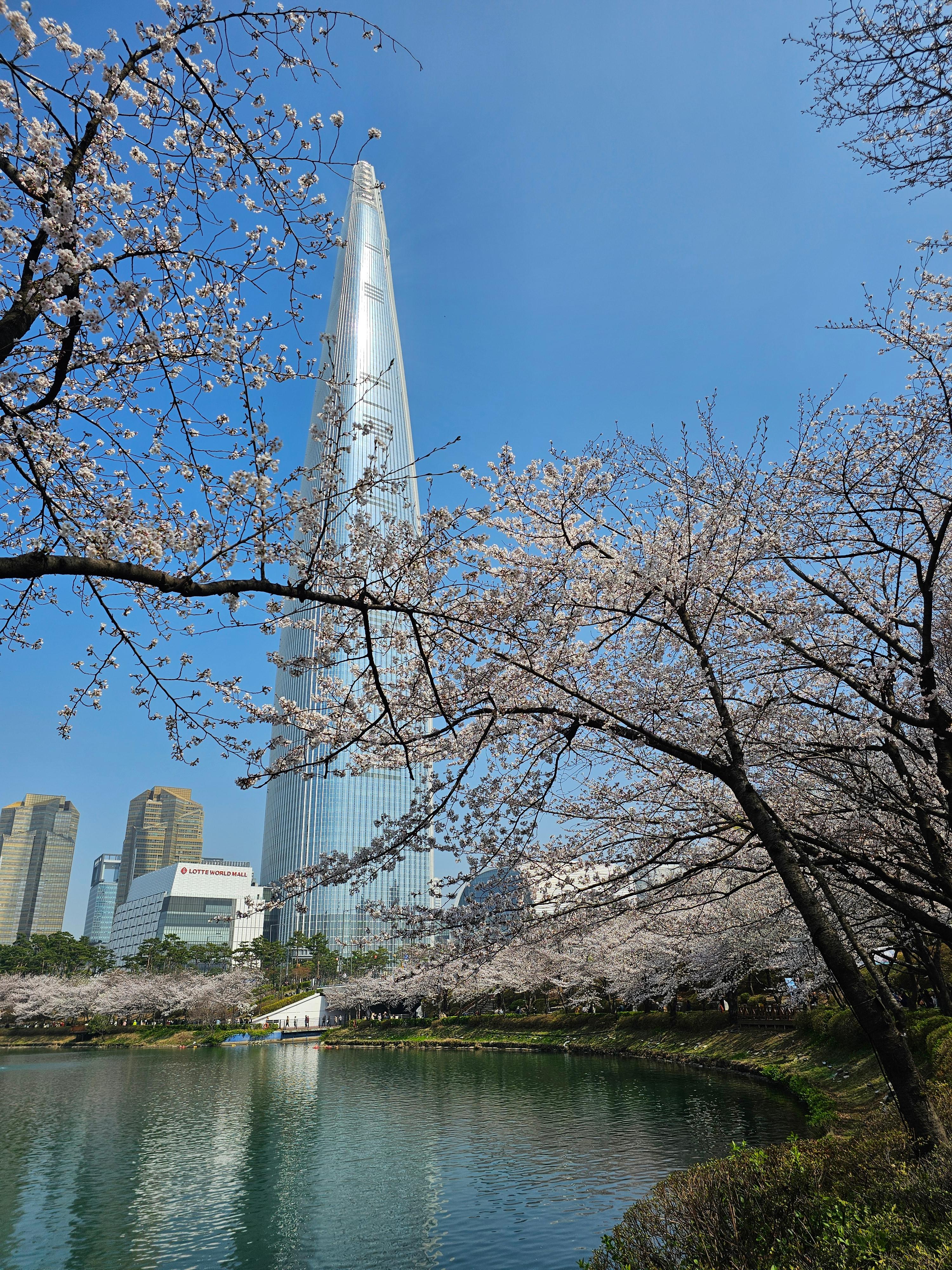 롯데타워+벚꽃의 서울 대표 배경