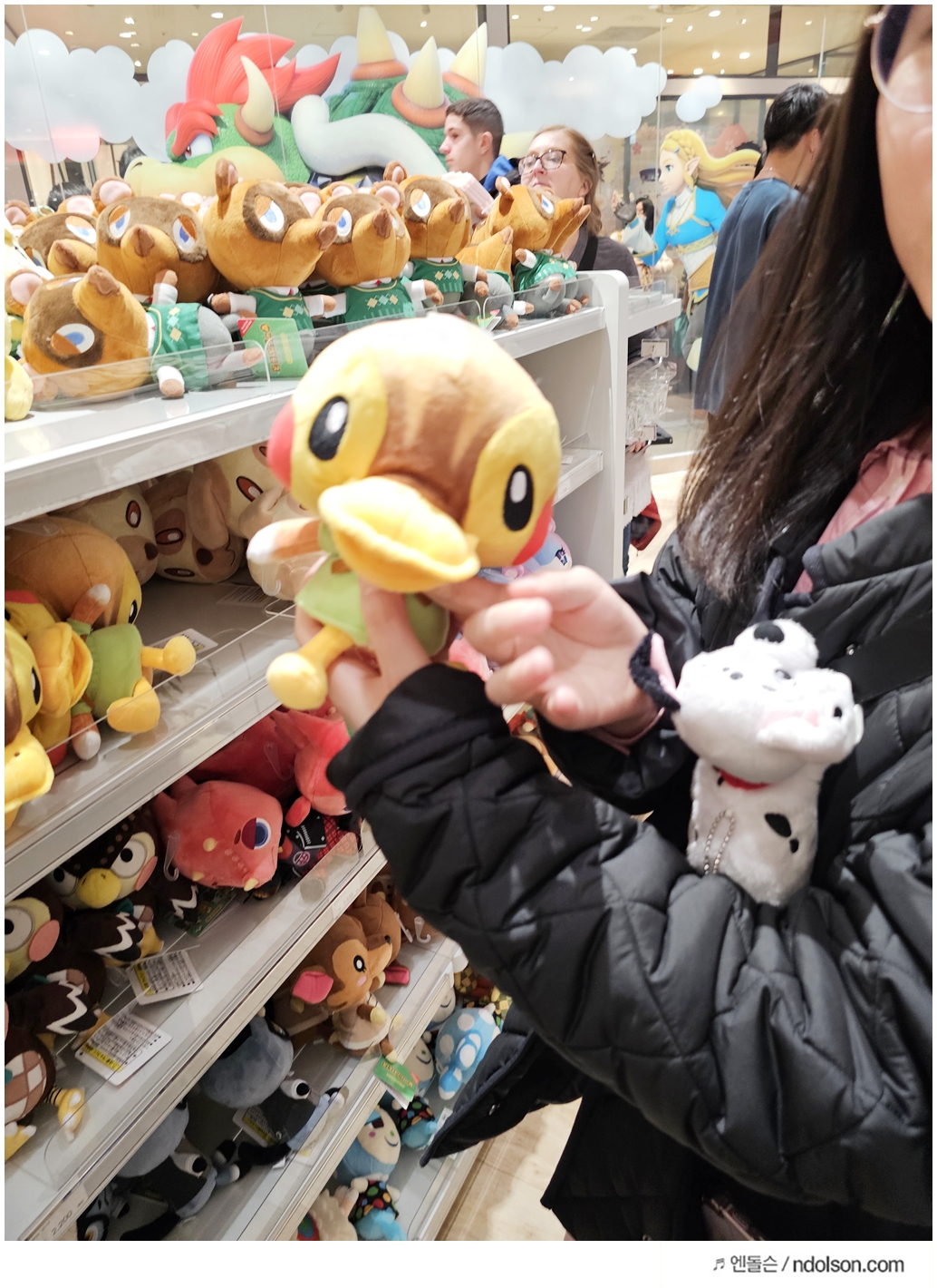 중앙 메인존을 중심으로 여러 닌텐도 관련 게임 스토어들이 둘러싸고 있었고, 특히 포켓몬 스토어의 존재감은 무시할 수 없었습니다. 초기 포켓몬들이 반기는 내부는 귀여움 그 자체였고, 고급스러운 굿즈들도 인상 깊었습니다.
