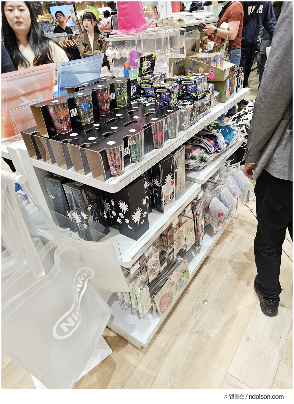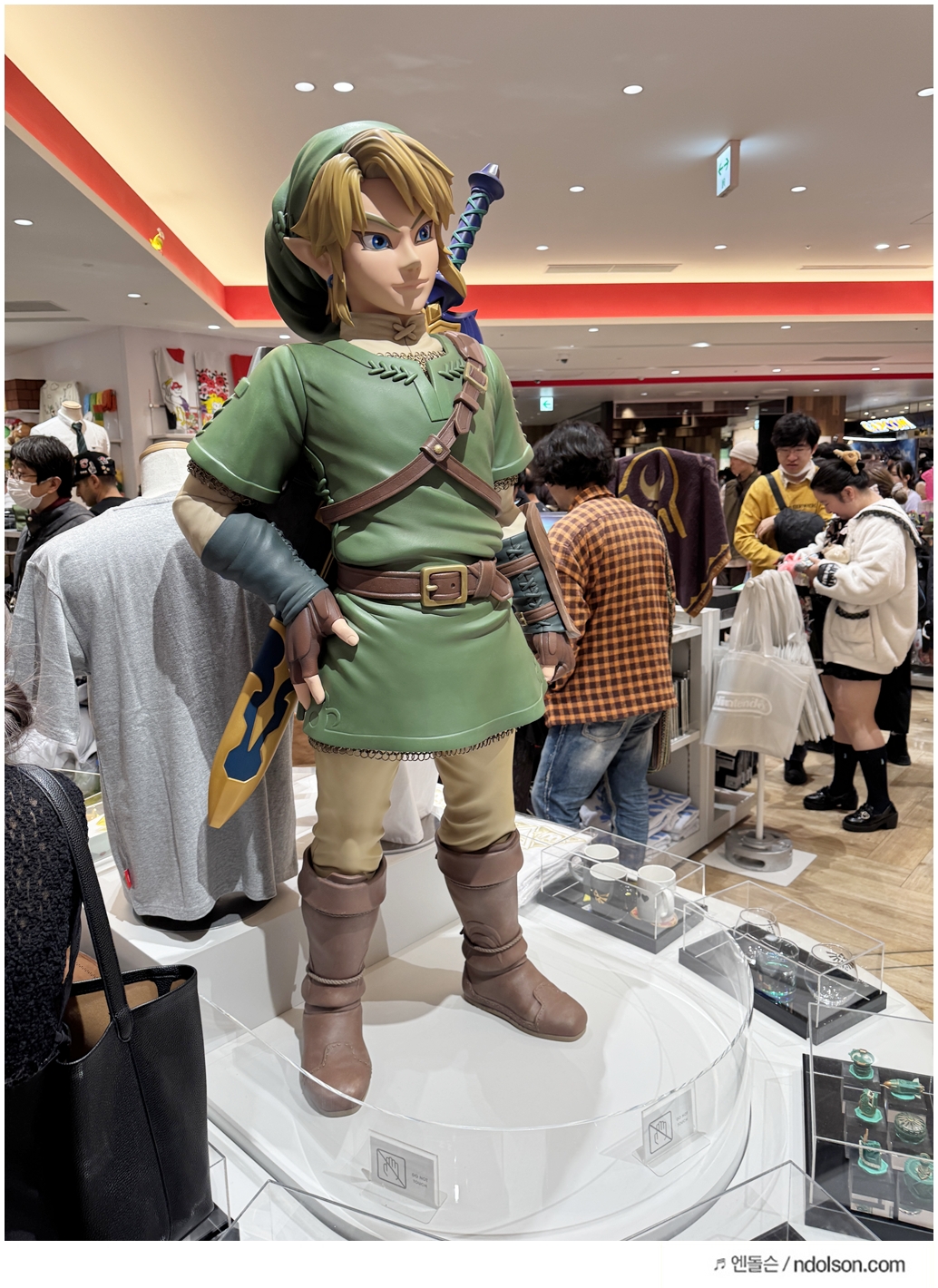 칼, 도마, 그릇까지 닌텐도스위치 게임들이 굿즈가 많아 마지막까지 고민해서 더 샀어요. 출구 쪽에서는 유리창 너머로 다시 한번 ‘링크’, ‘젤다’, ‘가논돌프’가 보이며 멋진 마무리를 지어주었습니다. 합리적인 소비로 원하는 것만 골라 샀지만, 다시 도쿄를 간다면 ‘그때 안 샀던 것들’까지 몽땅 들고 올지도 모르겠네요.