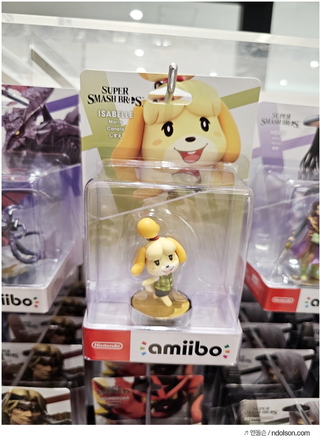 '모여봐요 동물의 숲' 존에서는 캐릭터 인형들이 줄지어 있었고, 딸아이도 즐겁게 구경하며 행복해했어요. 커비는 게임은 안 해봤지만 굿즈는 압도적인 귀여움으로 사진만 잔뜩 찍었습니다. 또, 슈퍼마리오 굿즈들은 복고 감성을 담아 소장 욕구를 자극했습니다.