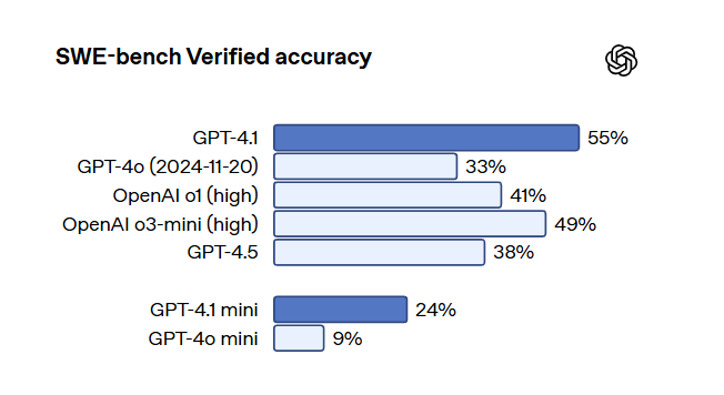 - 코딩 최적화: SWE-bench Verified 기준으로 54.6% 해결률을 기록하며 GPT-4o보다 약 20% 향상되었습니다.