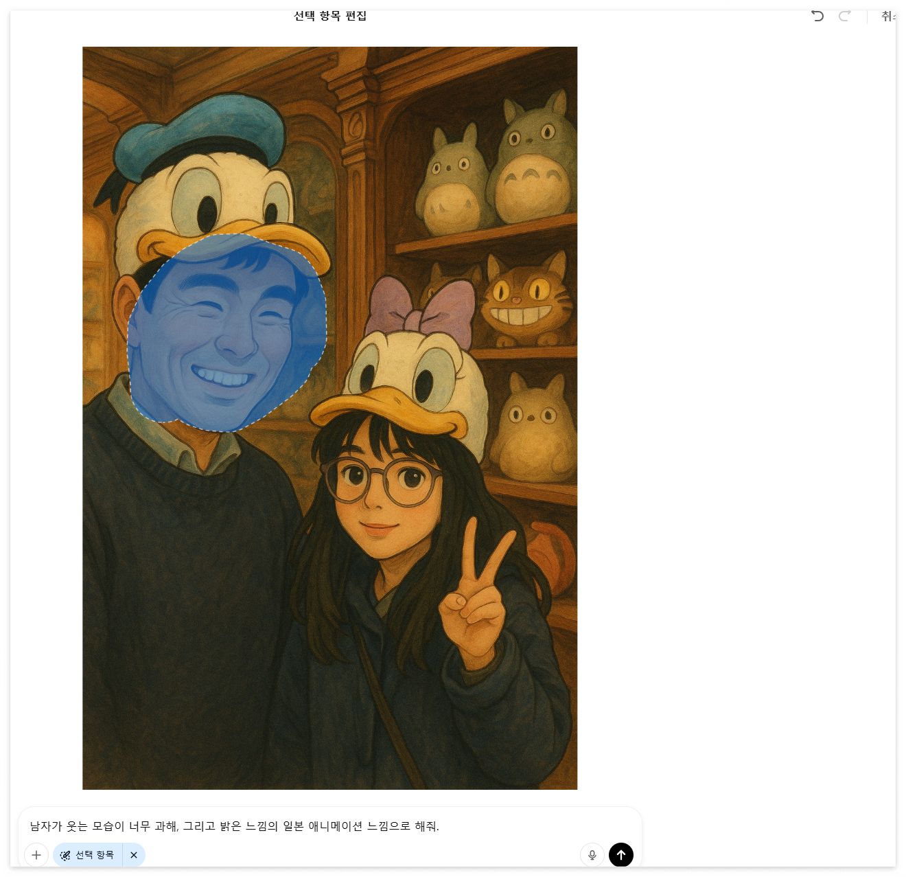 생성된 이미지가 마음에 안들거나 더 추가할게 있다면, 이미지를 클릭해서 수정할 수 있습니다.