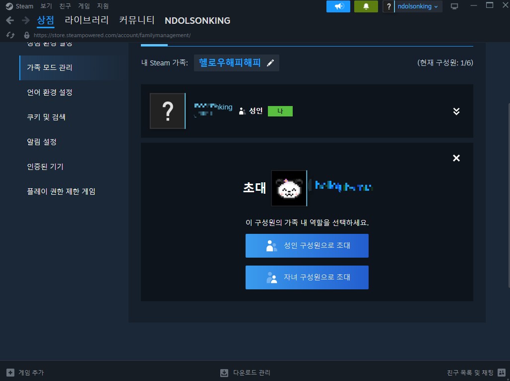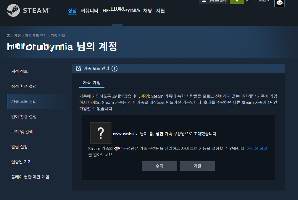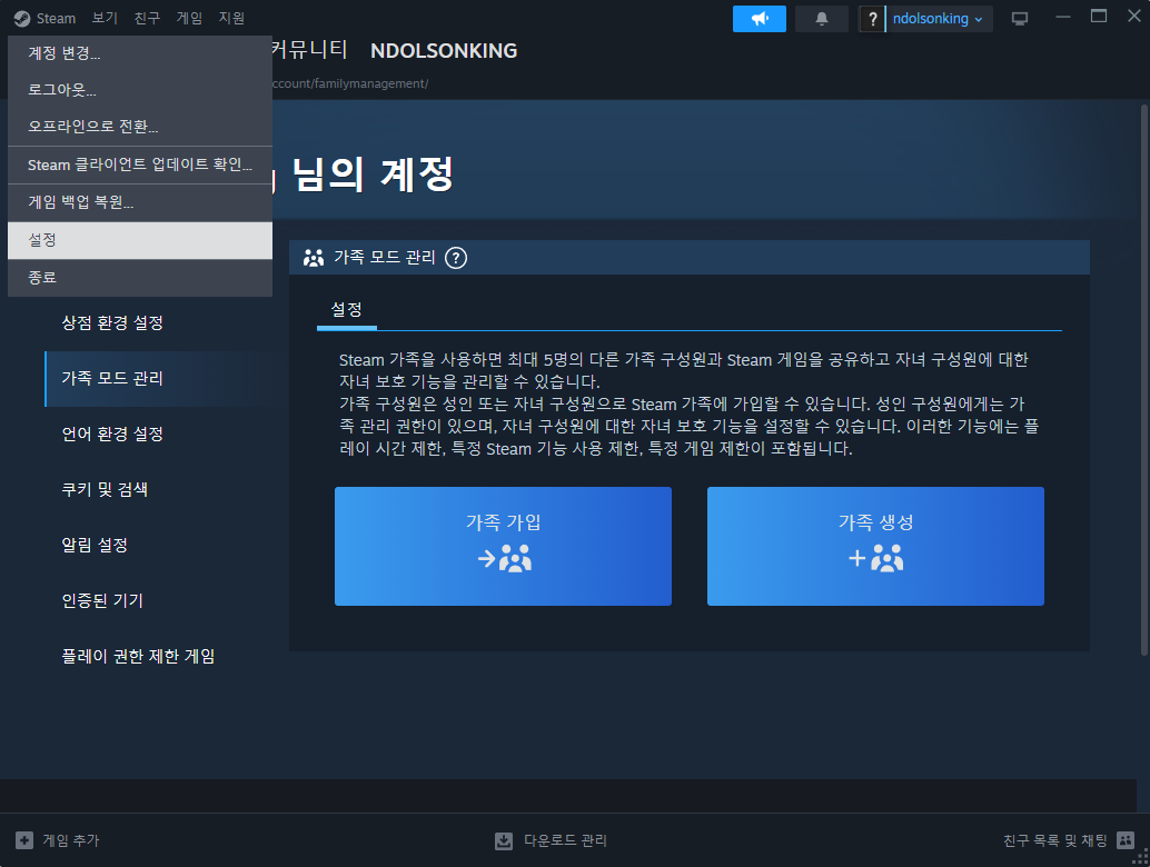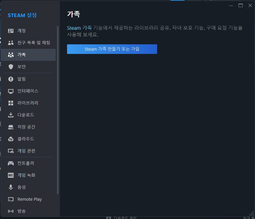 스팀 가족 공유 설정 방법