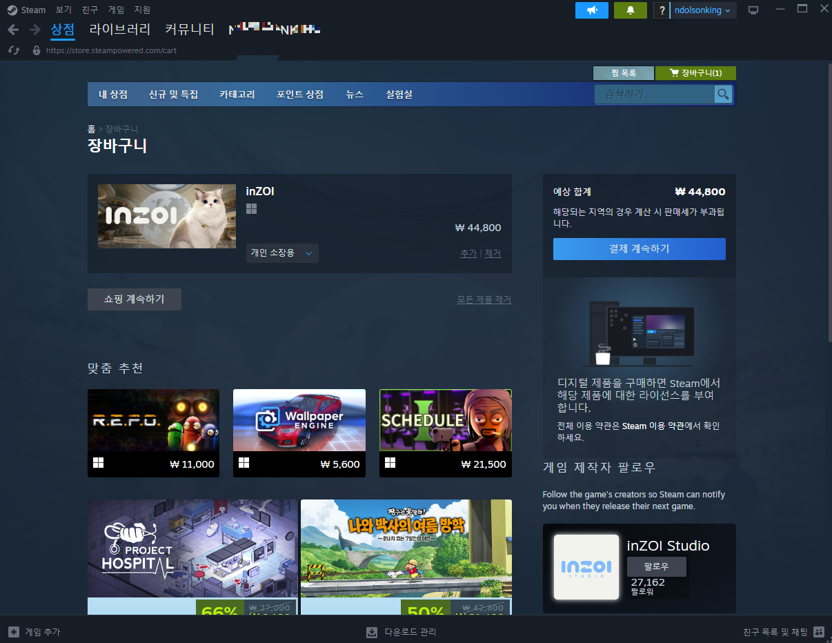 네이버에서 저렴하게 구매할 수 있는 경로도 있었지만, 보안 문제와 계정 관리의 번거로움을 생각해 스팀에서 정식으로 구매했습니다. 가격 차이는 있었지만, 안전하고 편리하게 가족과 함께 인조이 게임을 즐길 수 있어 만족스럽습니다.