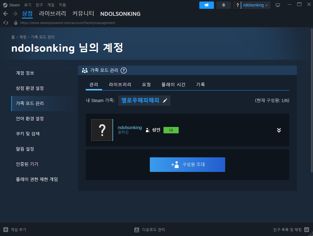 스팀 가족 구성원 게임 공유 기능 활용