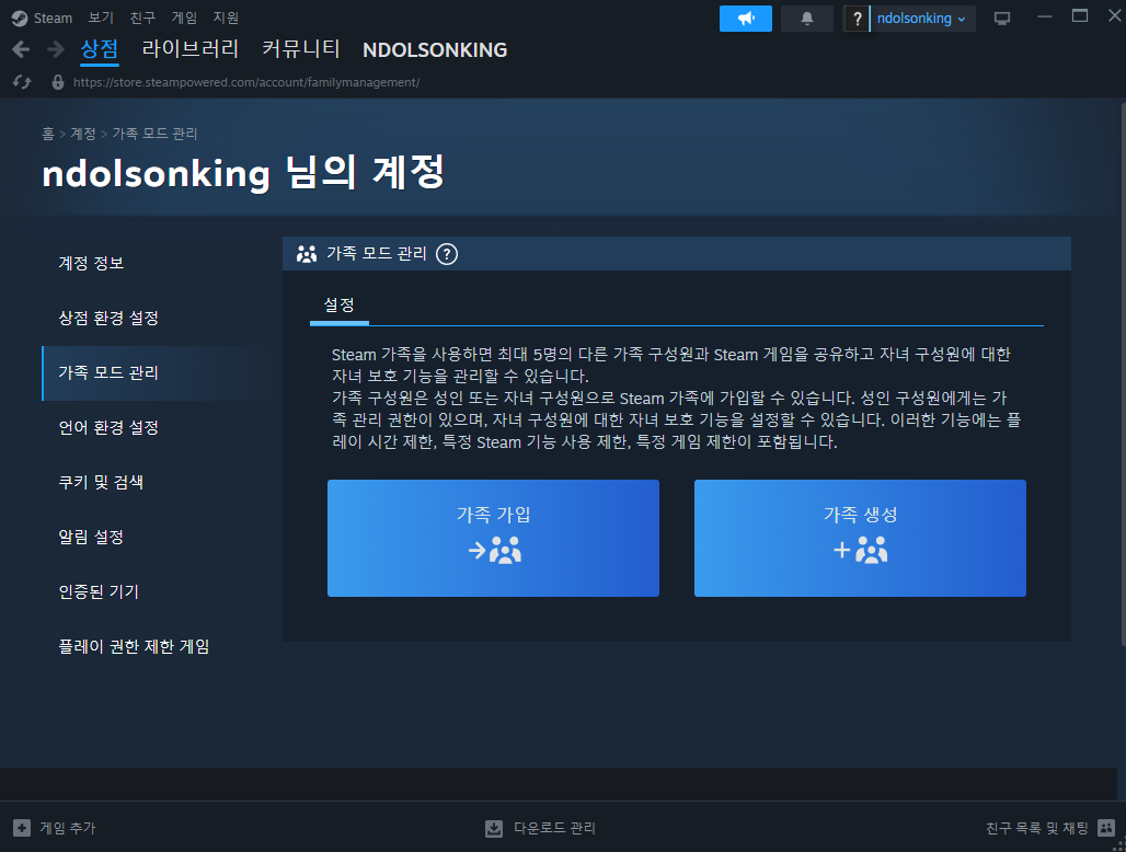 스팀 가족 공유 설정 방법
