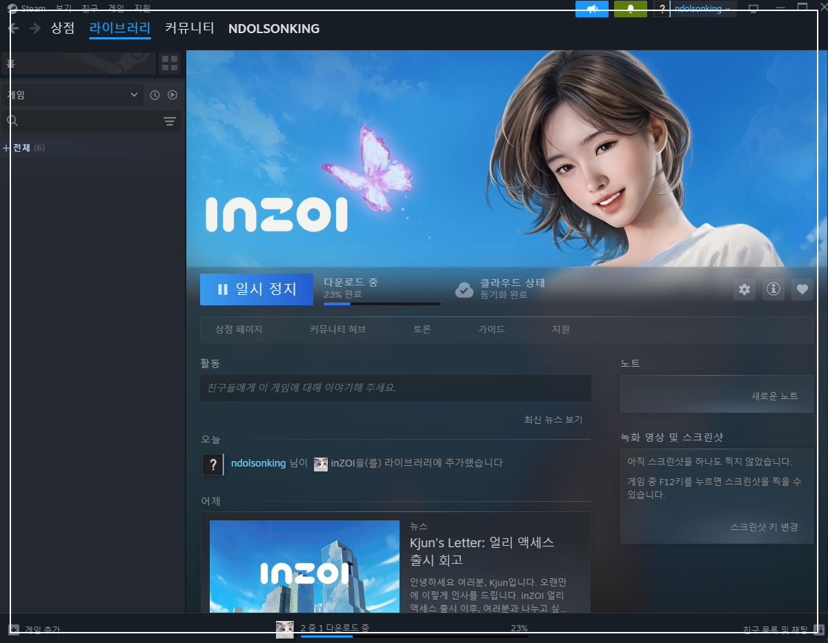 이 과정을 통해 딸아이도 자신의 계정으로 인조이 게임을 문제없이 즐길 수 있었습니다. 스팀 가족 공유 기능은 매우 유용하며, 특히 가족 단위로 게임을 즐기는 분들께 적극 추천드립니다.