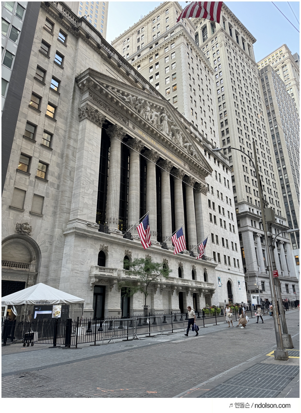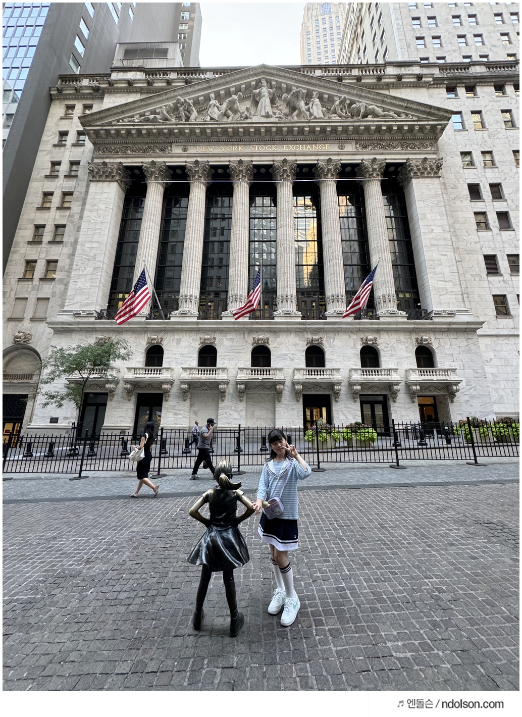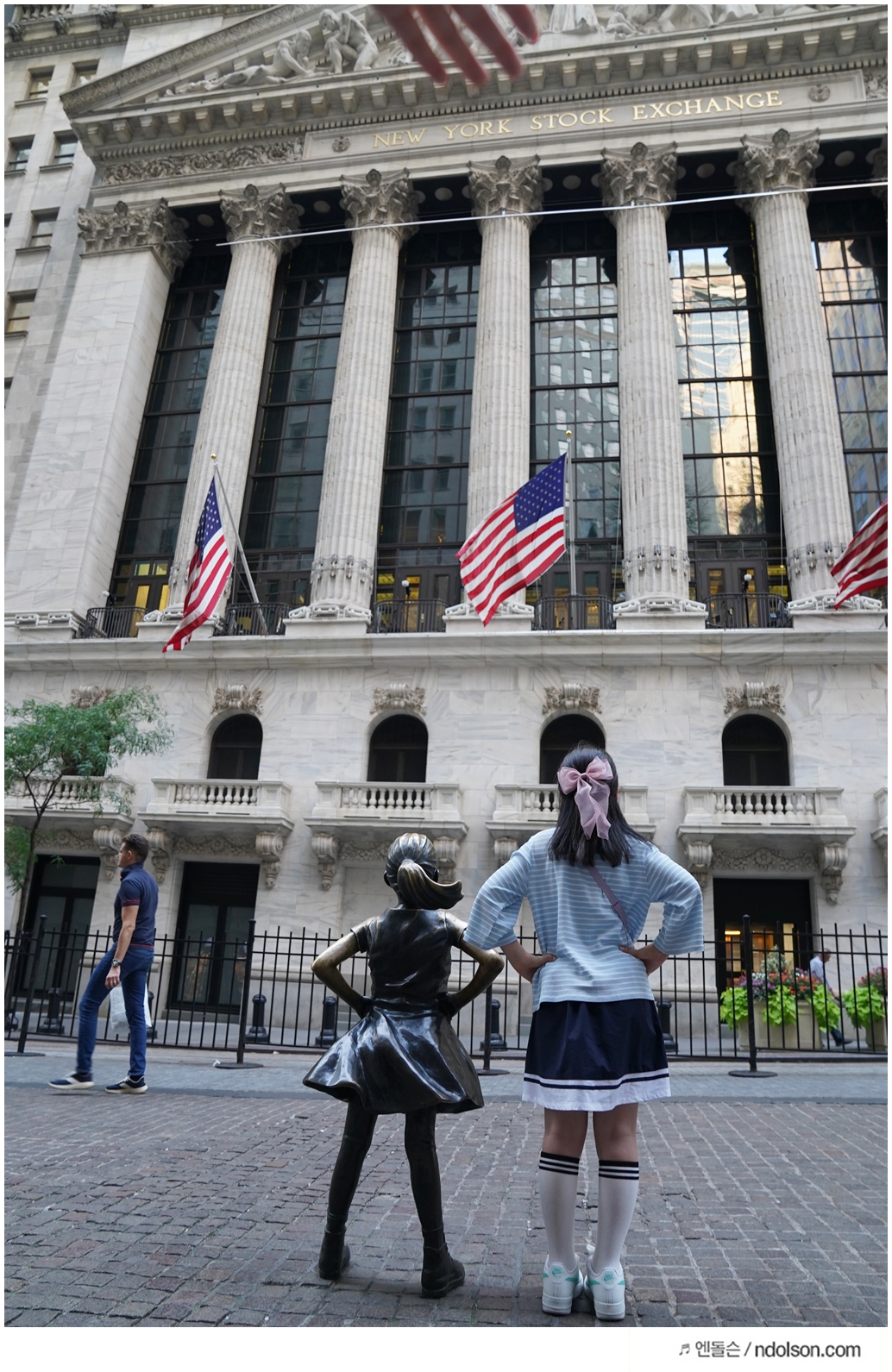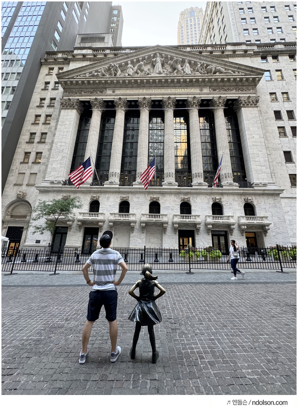 그 앞을 지나는 동안 문득 이런 생각이 들었습니다. "여기서 일하는 뉴요커는 어떤 기분일까?" 찰나의 상상 후 곧 현실로 돌아왔지만, 그래도 인증 사진을 남기며 마음속 소원을 빌어보았습니다. 그 소원은 바로, "내 미국 주식 올라라!"