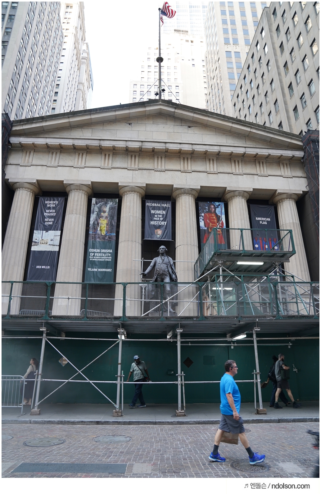 근처에는 조지 워싱턴의 취임식이 열렸던 역사적인 장소인 페더럴홀(Federal Hall)과 고풍스러운 트리니티 교회(Trinity Church)도 있었습니다. 각각의 장소는 뉴욕의 역사와 깊이 있게 연결되어 있어, 단순한 금융 중심지 이상의 의미를 느낄 수 있었습니다.