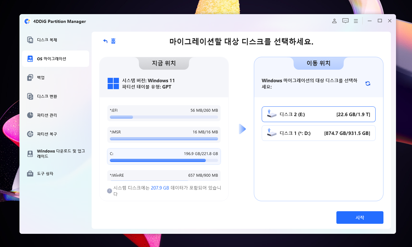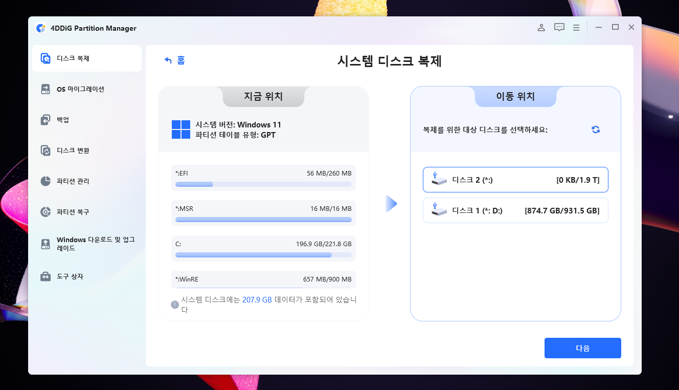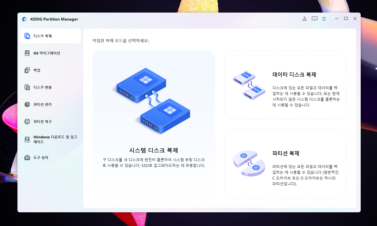 4DDiG Partition Manager는 이러한 문제를 쉽고 빠르게 해결할 수 있는 강력한 솔루션입니다. 무엇보다 OS와 프로그램을 재설치할 필요 없이 통째로 복제할 수 있다는 점에서 큰 메리트를 가집니다.