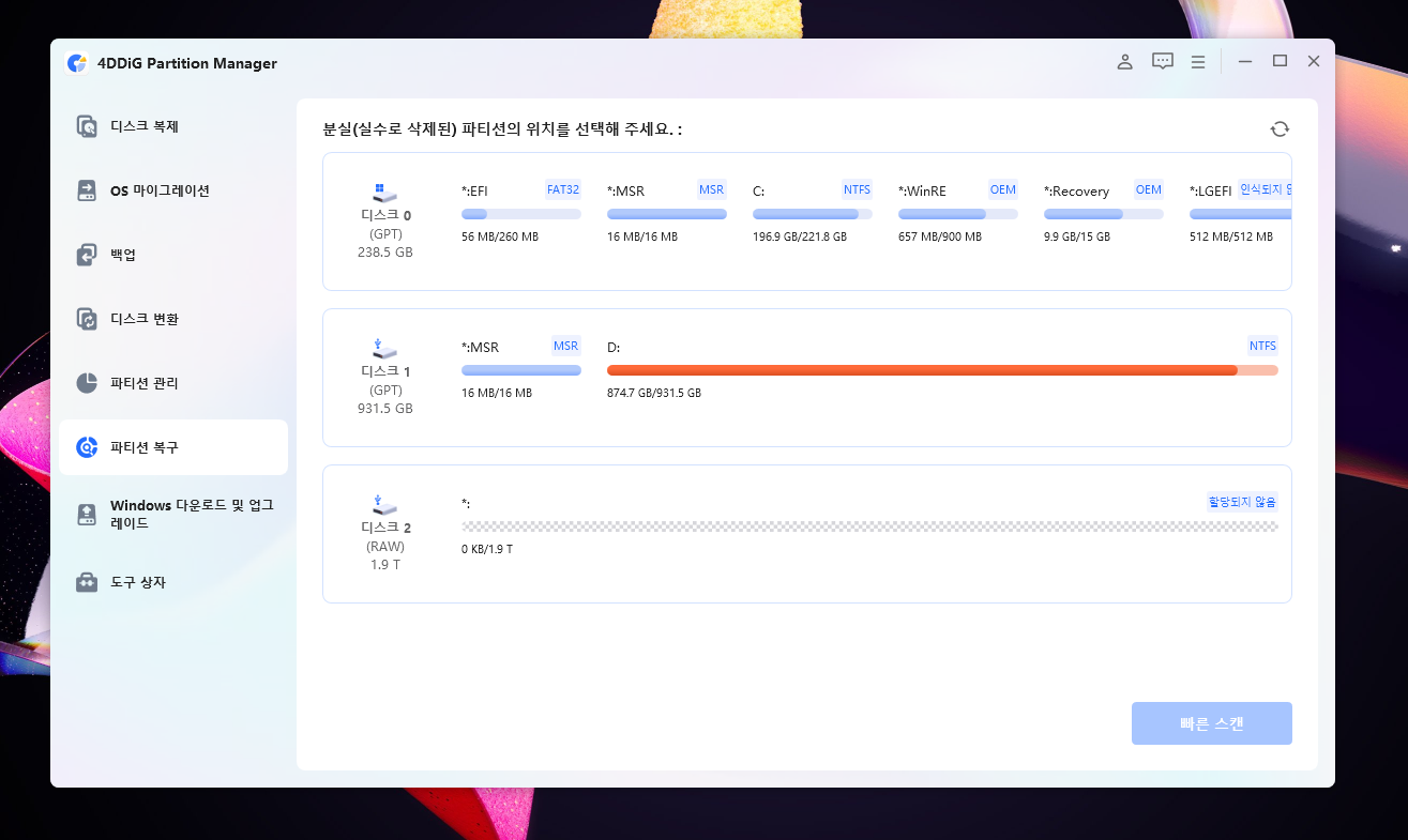 디스크 파티션 관리 프로그램 4DDiG Partition Manager