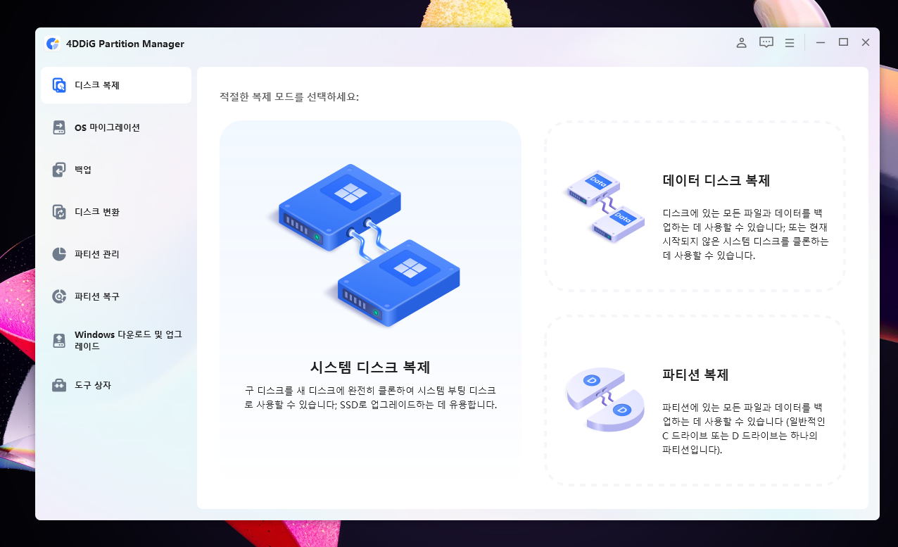 4DDiG Partition Manager는 이러한 문제를 쉽고 빠르게 해결할 수 있는 강력한 솔루션입니다. 무엇보다 OS와 프로그램을 재설치할 필요 없이 통째로 복제할 수 있다는 점에서 큰 메리트를 가집니다.