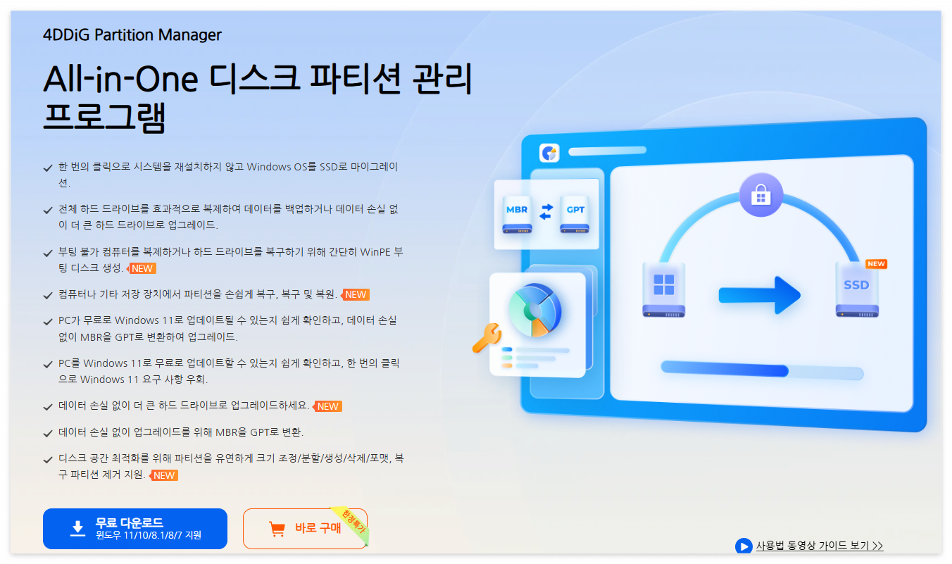 이 과정에서 가장 번거로운 부분은 운영체제(OS)와 프로그램들을 모두 새로 설치해야 한다는 점입니다. 오늘은 이러한 고민을 해결해 주는 강력한 솔루션, 4DDiG Partition Manager(포디딕 파티션 매니저)를 소개합니다.