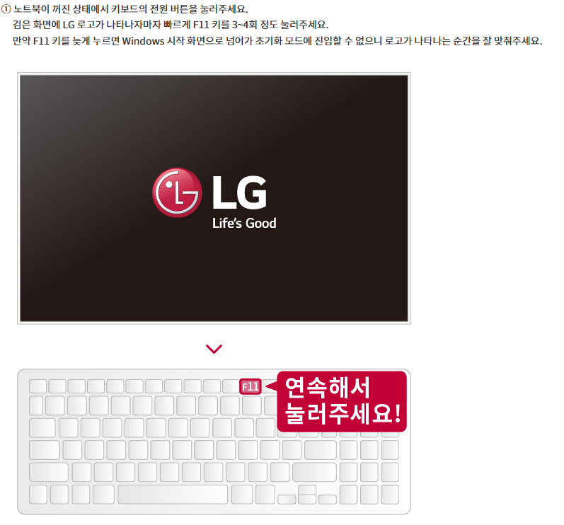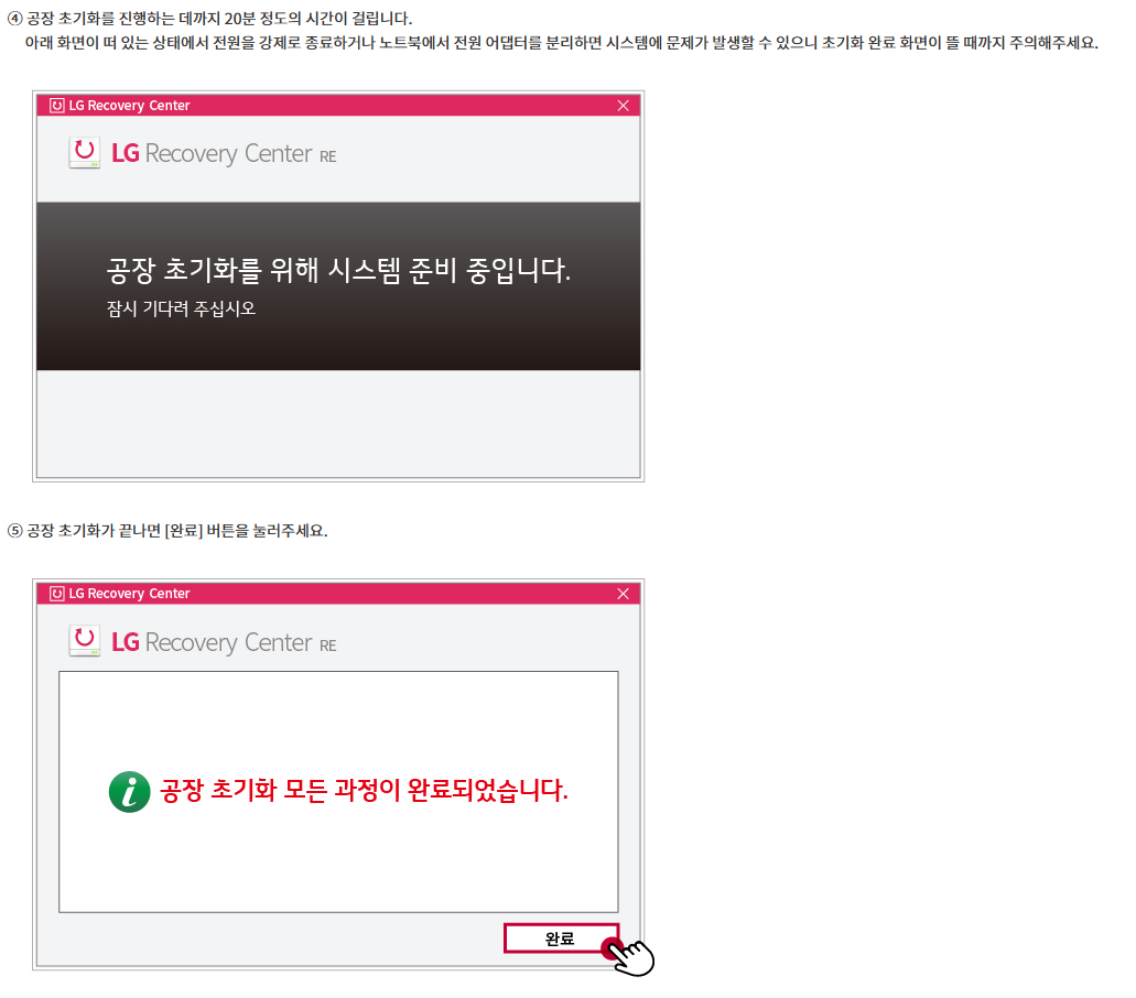 스스로 해결 : [LG 노트북] LG Recovery 공장 초기화 방법이 궁금해요 (Windows 10 출시 제품) | LG전자 고