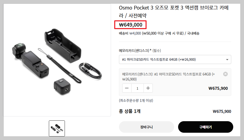 오즈모 포켓3 사전예약이므로 최소 1~3개월이 걸립니다. 그래서 10~15만원 더 주고 새상품에 비싼걸 사는거죠.