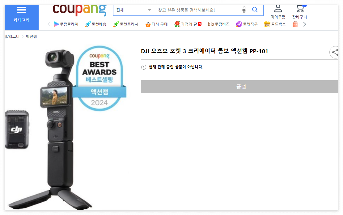 <쿠팡 로켓배송 > 오즈모 포켓3 호환 배터리 구매하기