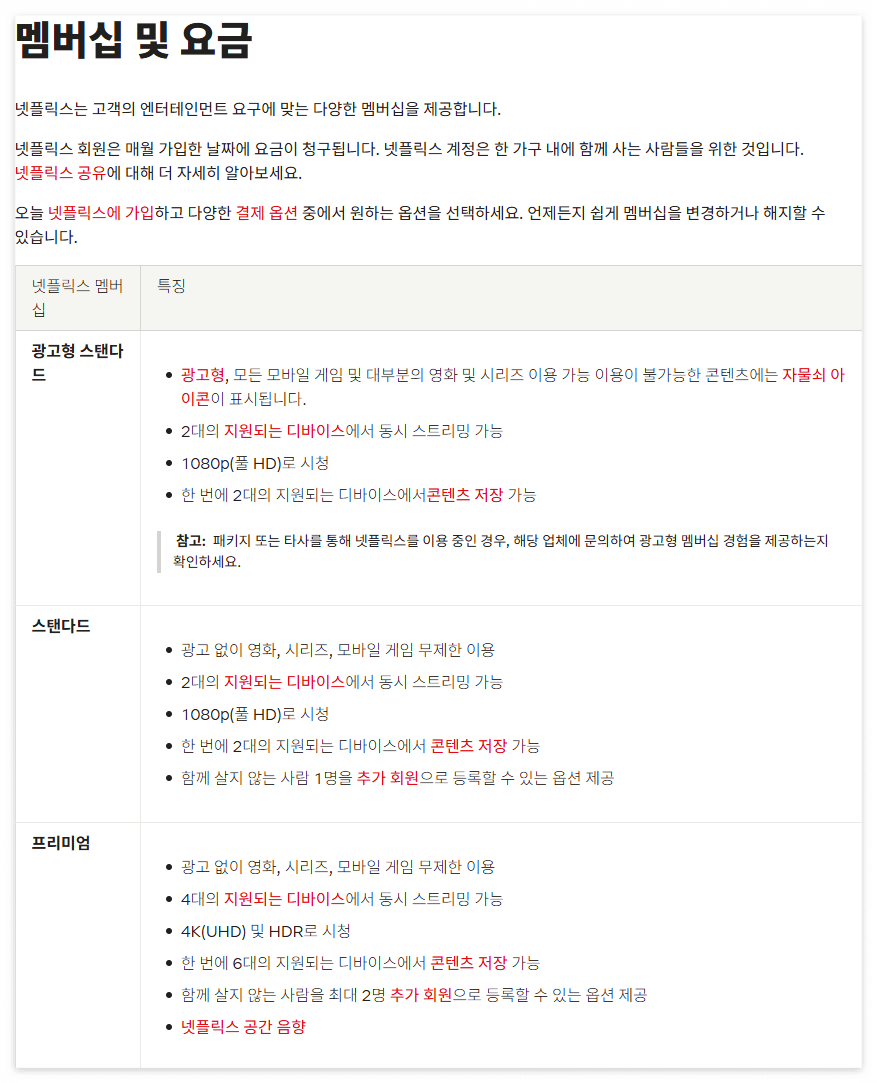 각 요금제는 가격, 화질, 동시 시청 인원, 광고 여부, 다운로드 가능 여부 등에서 차이가 있으며, 사용자 입장에서는 자신에게 맞는 플랜을 선택하는 것이 매우 중요합니다.