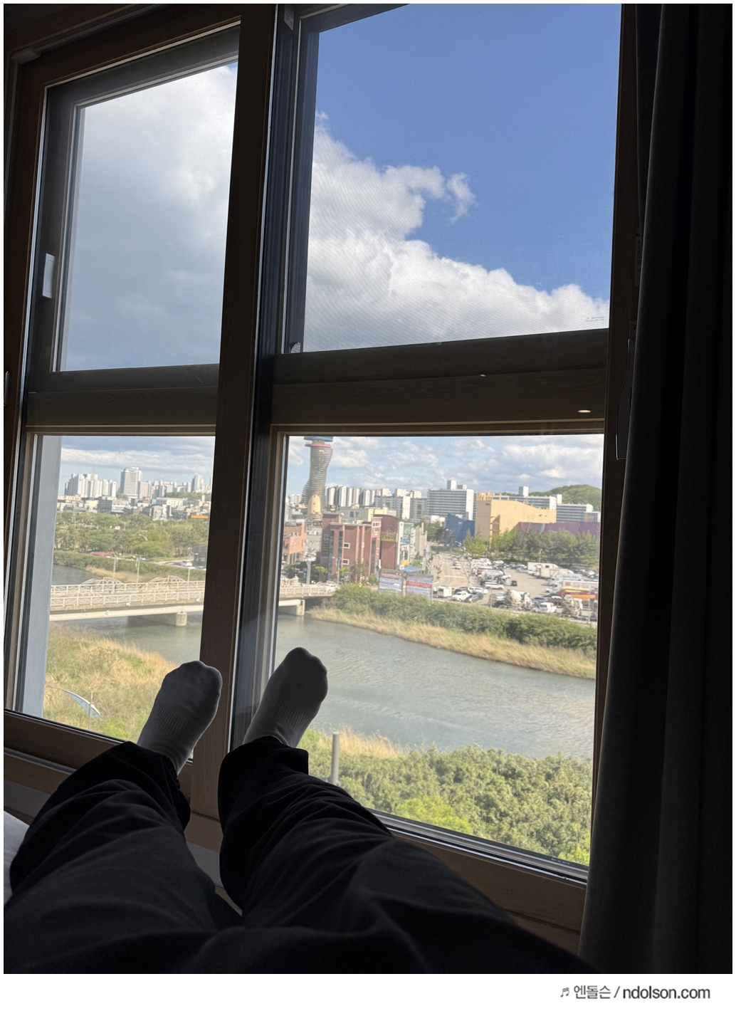 숙소는 A, B, C, D동으로 구성되어 있으며, 그중 B동은 수영장 바로 앞이라 경쟁이 치열했습니다. 처음엔 B동에 묵을까 했지만 결국 여유롭게 D동으로 선택했고, 5층에서 바라본 전망도 꽤 괜찮았습니다.