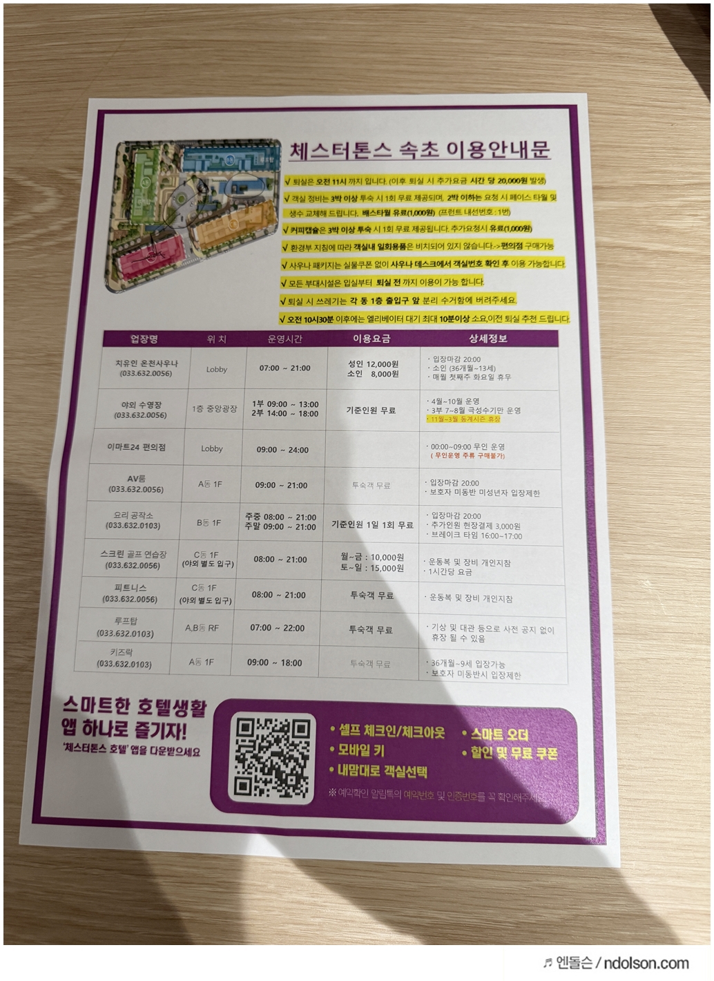 속초 엑스포로 중심가에 위치한 체스터톤스 호텔은 겉보기에는 아파트 단지처럼 생겼습니다. 실제로 입구를 들어서면 건물들 사이로 공용 수영장이 보이고, 헬스장, 사우나, 도서관, 실내 스크린골프장 등 아파트 커뮤니티 시설 못지않은 부대시설이 갖춰져 있어, '이게 호텔이야? 아파트야?' 싶은 착각이 들 정도였습니다.