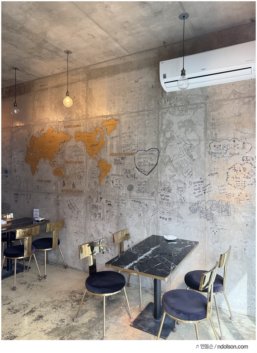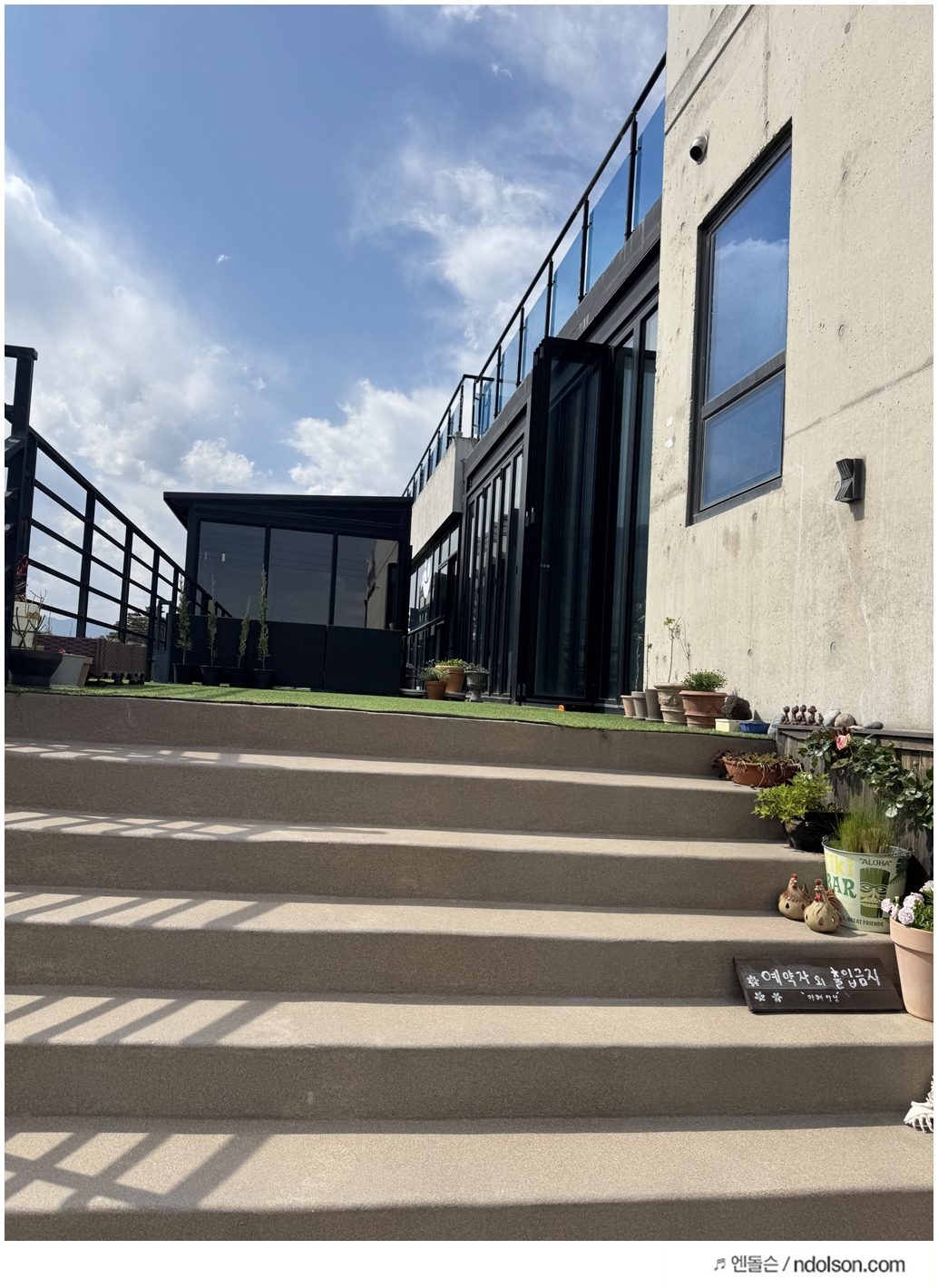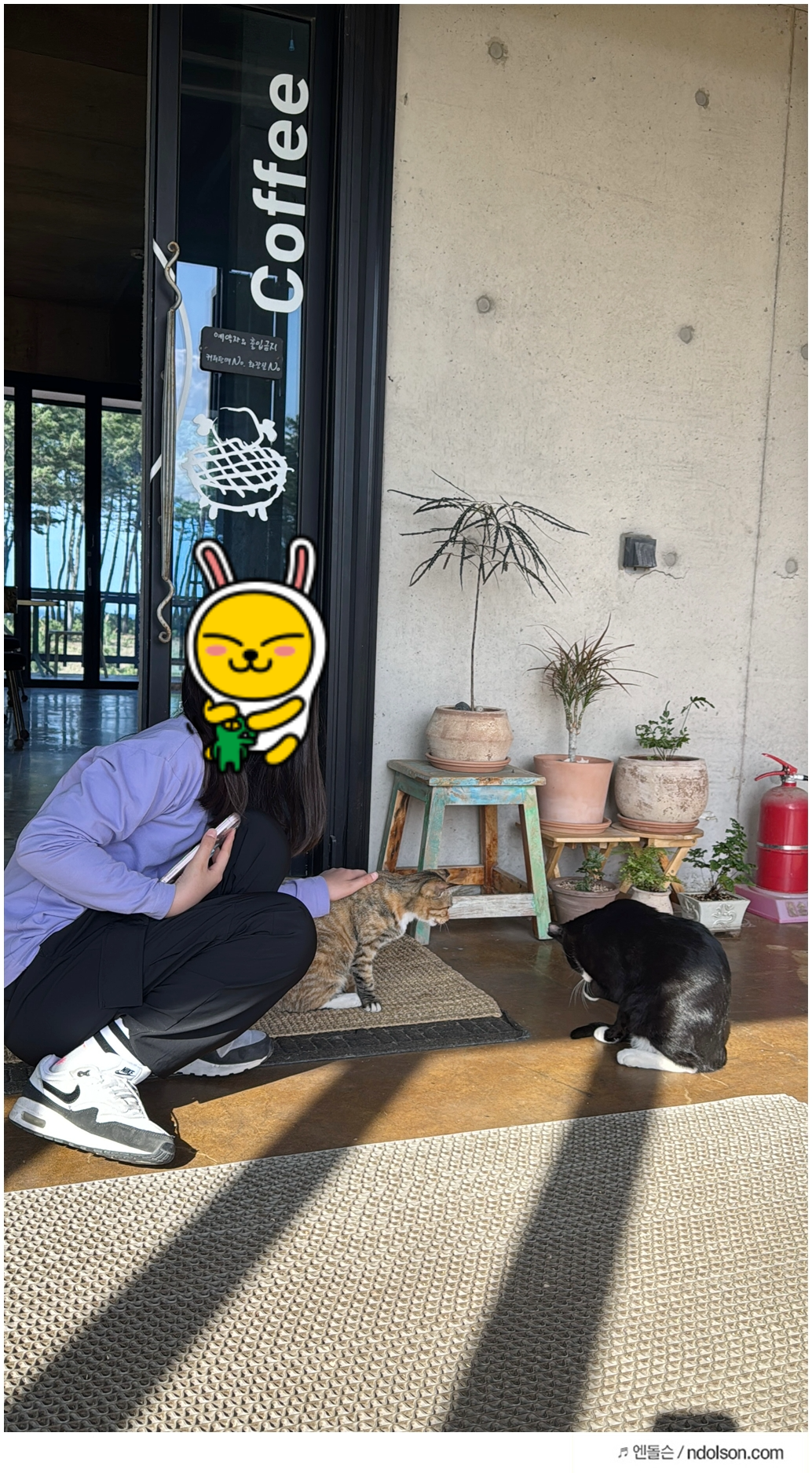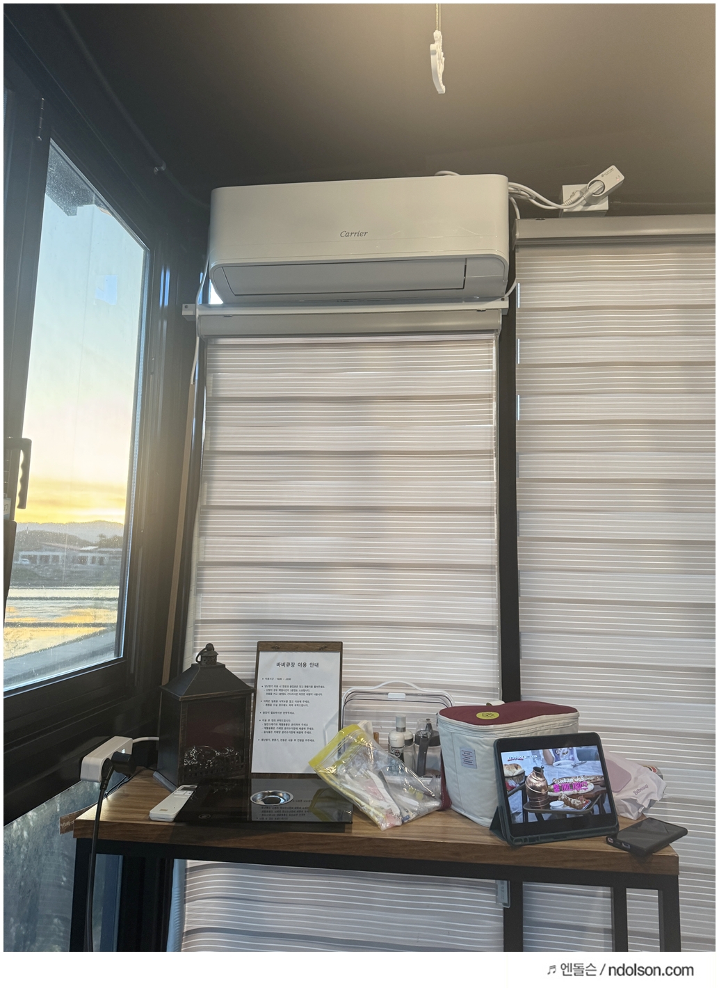 펜션 1층에는 예쁜 전용 카페 공간이 있으며, 투숙객은 무료로 커피를 즐길 수 있습니다. 아침에 커피 한잔 뽑아 바닷가 산책하는 여유는 정말 힐링 그 자체였어요. 커피 맛도 꽤 괜찮아 카페 부럽지 않았습니다.