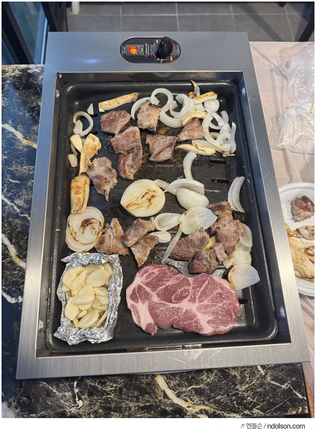 모든 객실에 개별 바베큐장이 마련되어 있어 프라이빗한 식사가 가능합니다. 그릴 대여료는 20,000원이지만, 고기와 맥주를 직접 구워먹는 재미가 쏠쏠합니다. 다만, 일부 객실은 야외 바베큐장이라 겨울철엔 조금 추울 수 있어요.