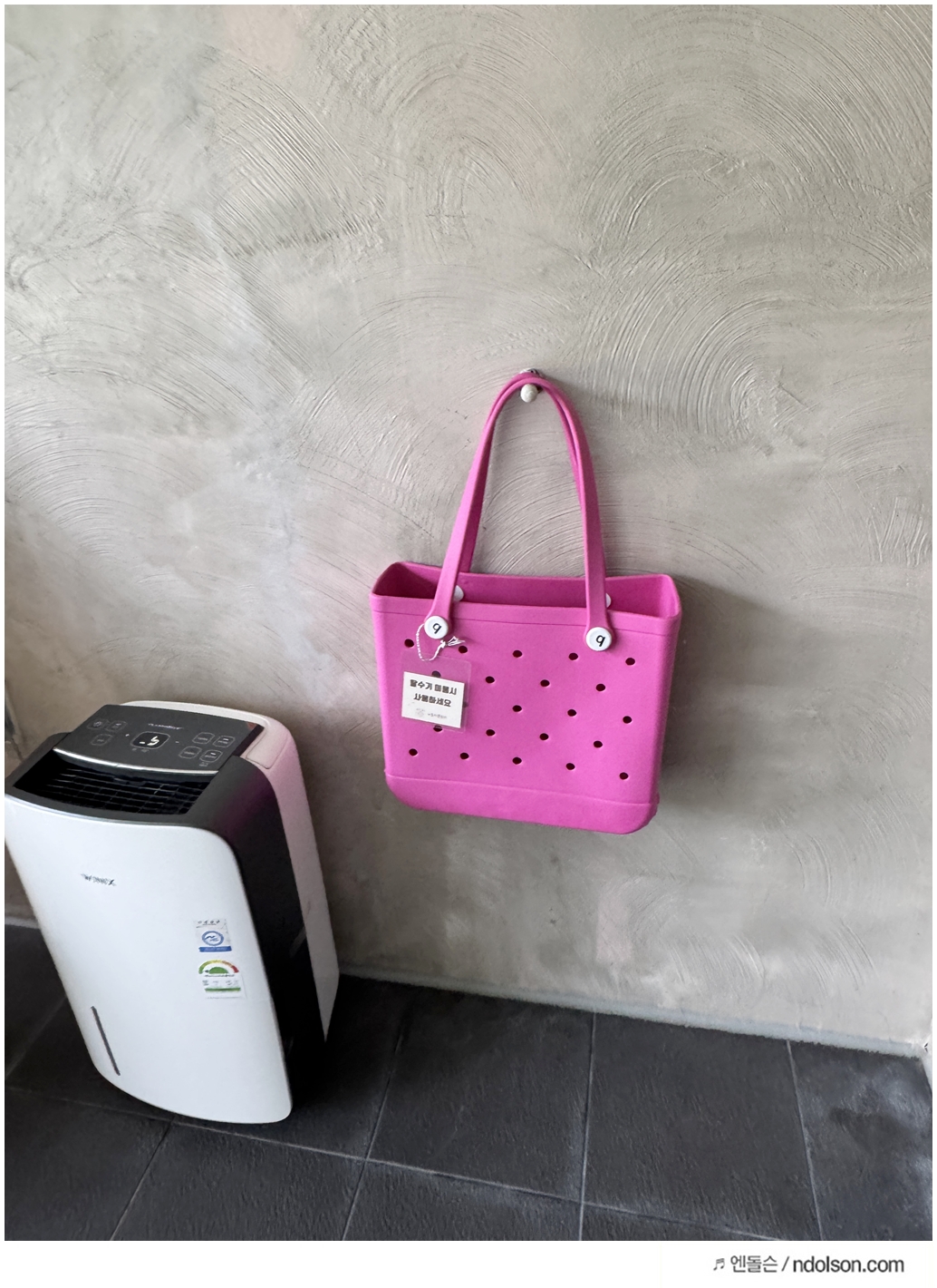수영장이 바로라 편하고 문닫으면 습하지도 않아 좋아요. 제습기는 계속 돌아요.