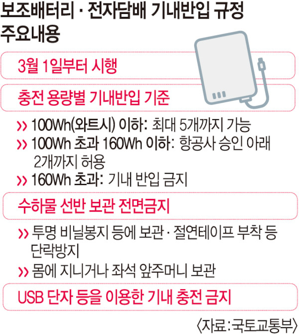 100Wh 이하 보조배터리 최대 5개까지 반입 가능