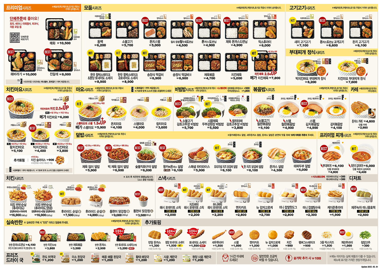 한솥 도시락 2025년 5월 최신 메뉴판
