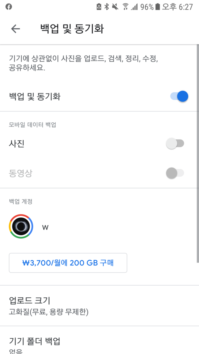 구글포토 앱을 설치한 후 우측 상단의 프로필 아이콘에서 '포토 설정'으로 들어가 '백업 및 동기화' 항목을 활성화하면 자동 백업이 시작됩니다.