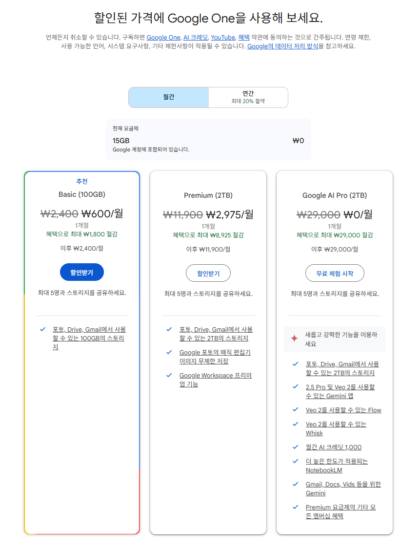 Premium(2TB): 연간 119,000원으로, 구글포토의 매직 편집기와 무제한 이미지 저장 기능까지 제공되어 전문 사진가나 대용량 미디어를 다루는 사용자에게 이상적입니다.
