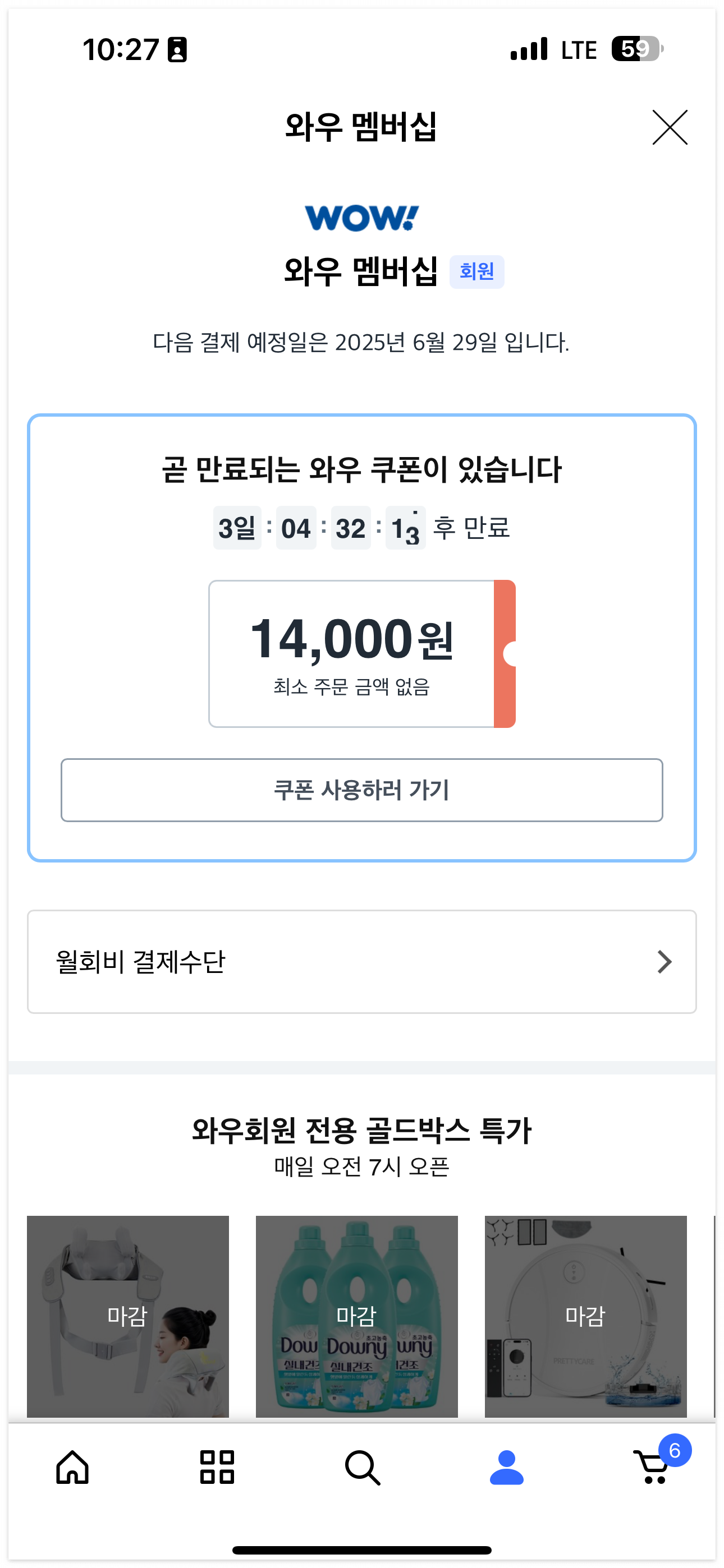 - 와우회원 전용 특가 상품: 특정 상품군에 대해 회원 한정 특가 제공