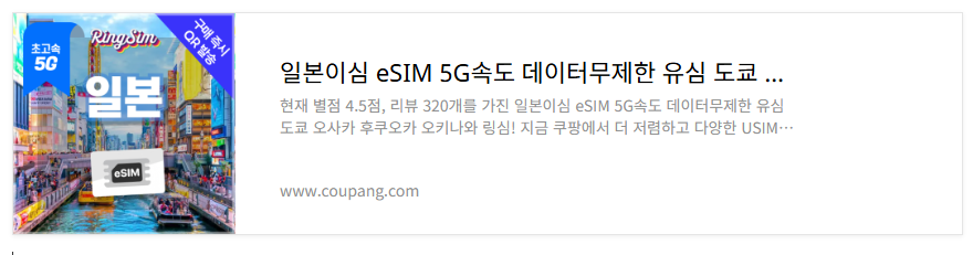 <쿠팡 로켓배송> 쿠팡 일본 eSIM 5G 데이터무제한 유심 구매하기
