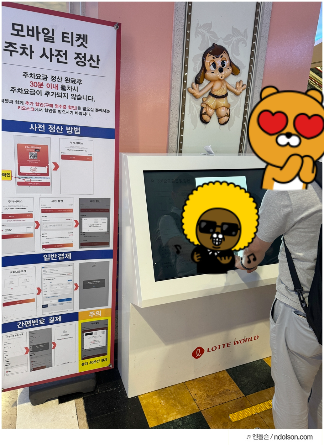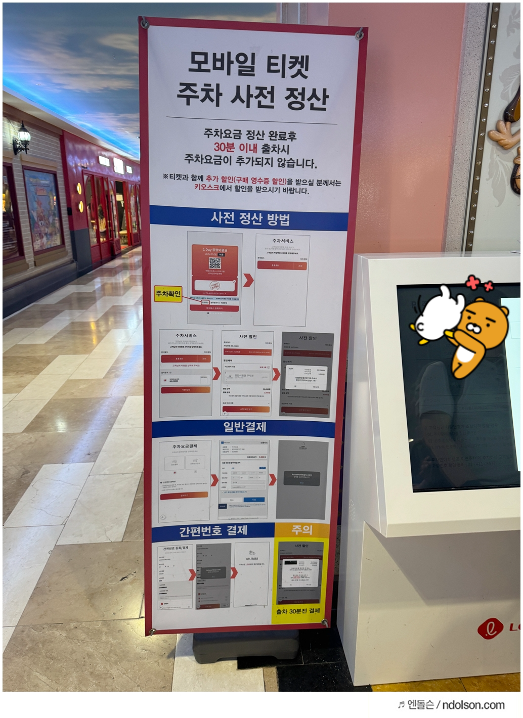 롯데월드 어드벤츠 입구쪽 기둥에 보면, 모바일 사전 정산 하는 곳이 있습니다.