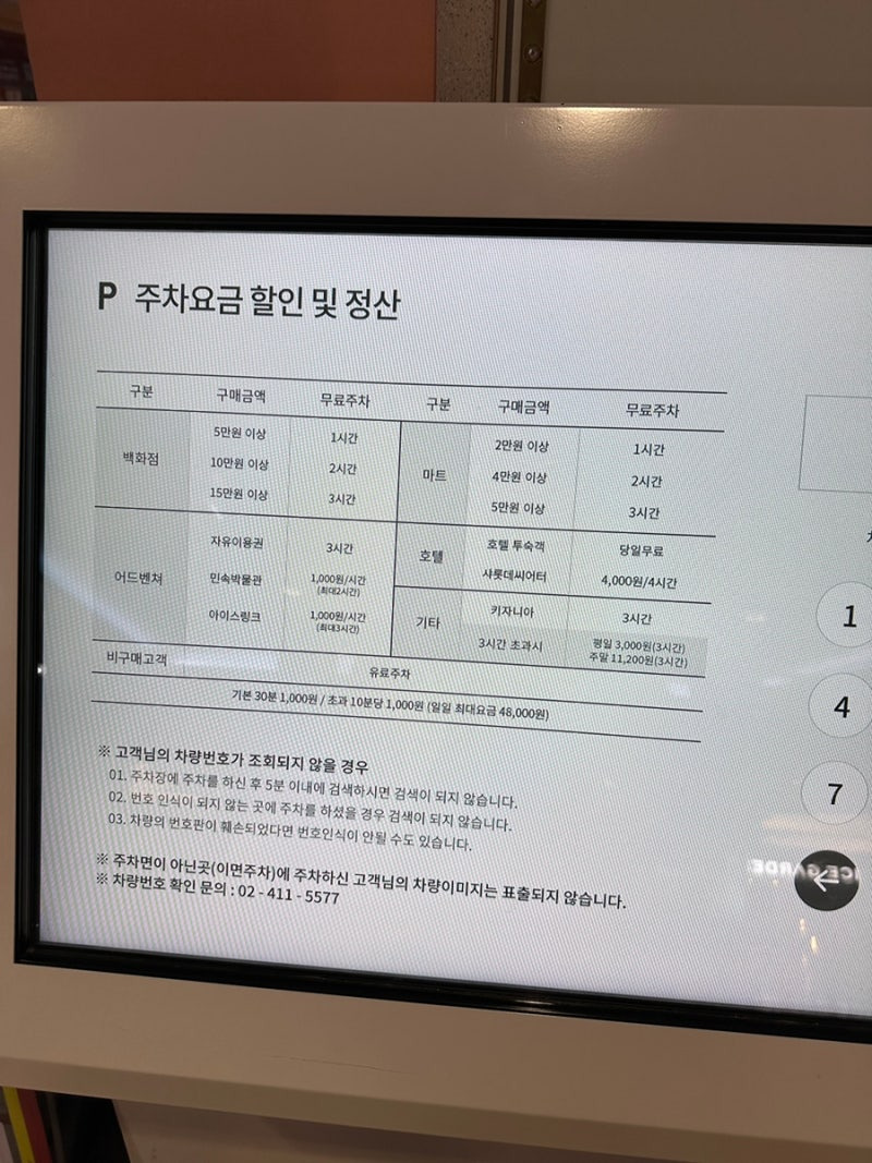잠실 롯데백화점 주차비 (무료 주차, 시간 구매 할인 요금)