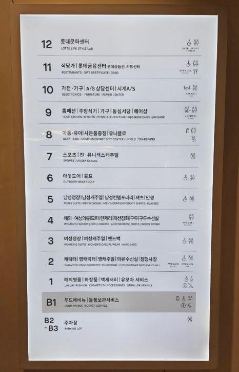 롯데백화점 잠실점 층별매장안내