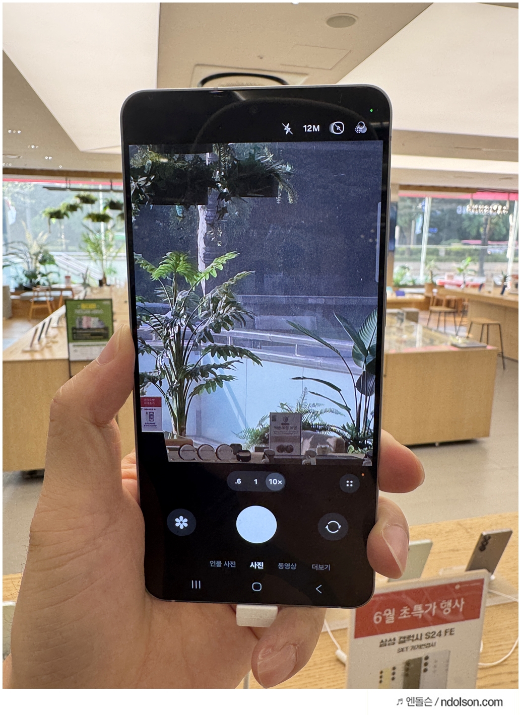 전시존에서 직접 촬영해 본 AI 줌 기능은 인상적이었습니다. 3배 줌 사진은 노이즈가 적고 디테일이 살아 있었고, 최대 30배 줌 시에도 흔들림이 보정돼 선명함이 유지됩니다.