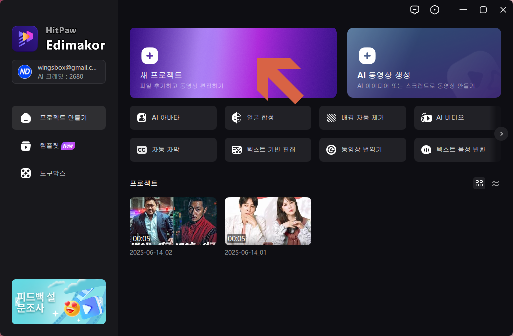 AI 동영상 제작을 위해서 우선 새 프로젝트를 만듭니다.