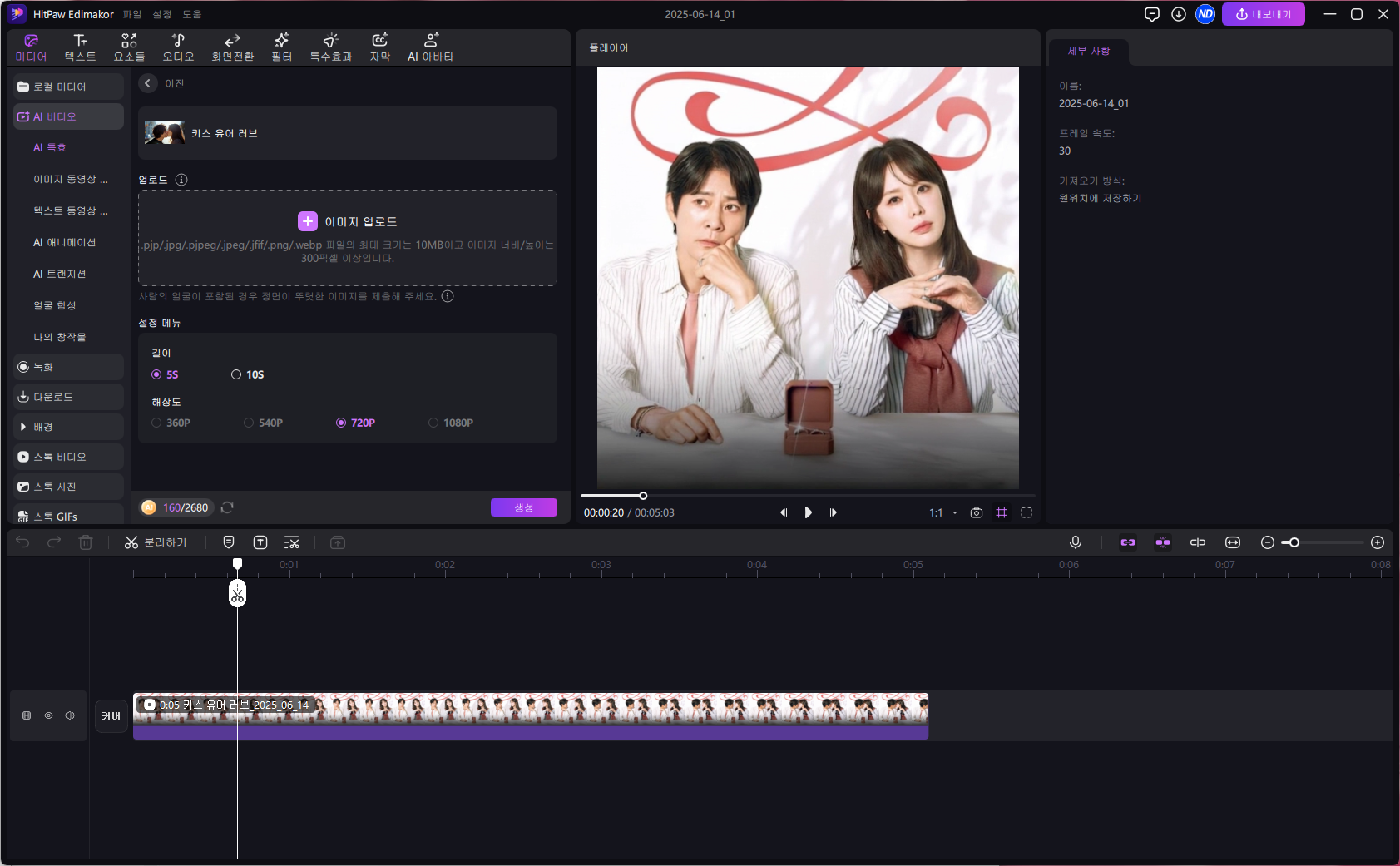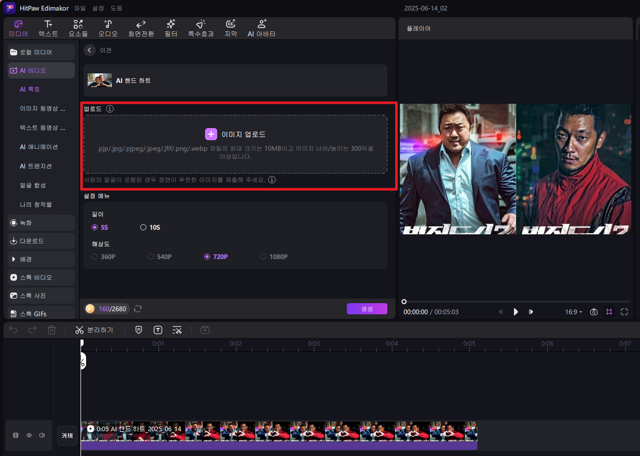 이미지 업로드에 변경할 이미지를 업로드 해줍니다. 이렇게 AI 영상을 손쉽게 만들 수 있죠.
